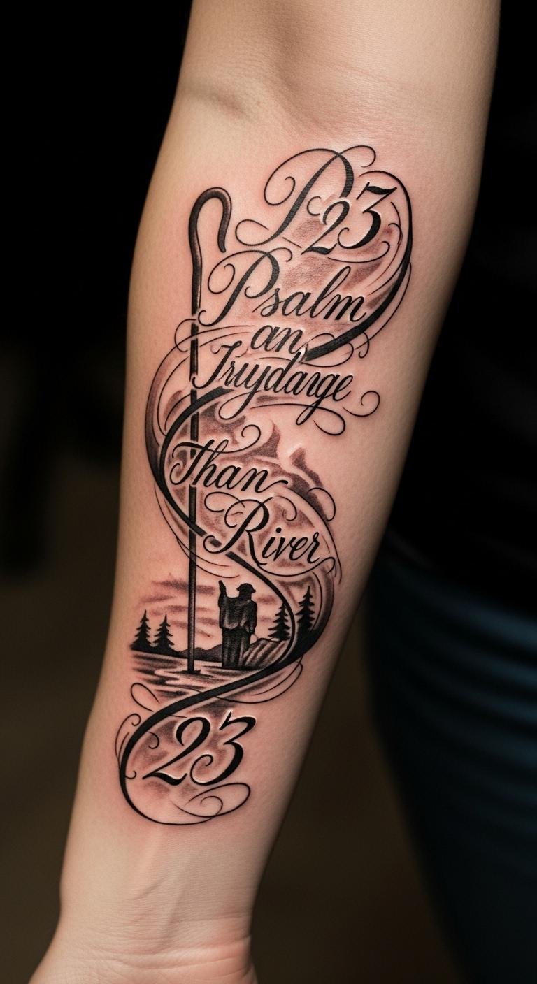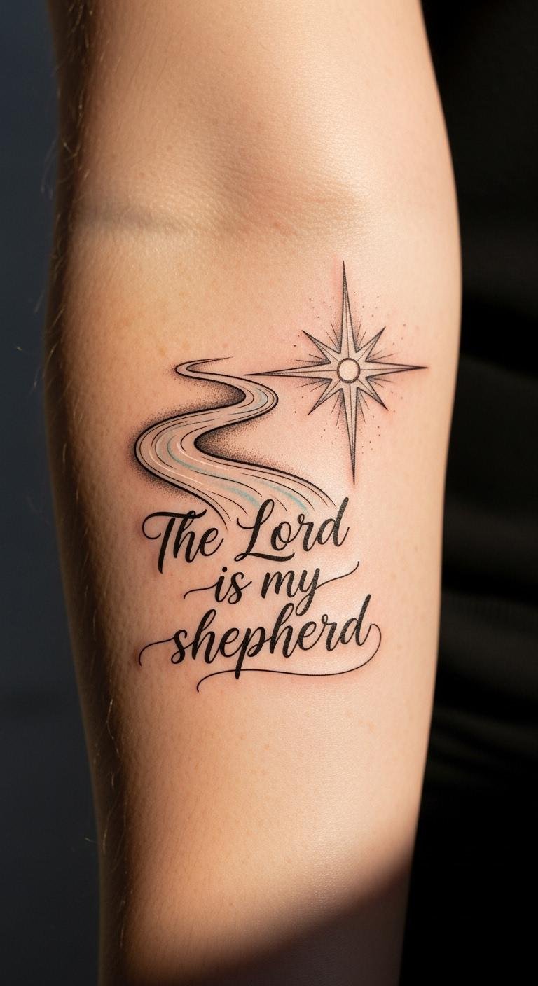 This tattoo symbolizes guidance and protection, reflecting the essence of Psalm 23.