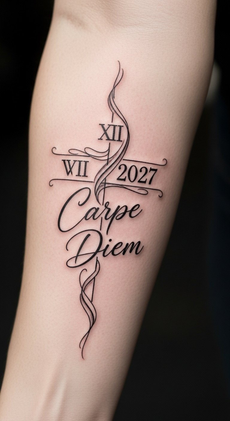 This tattoo symbolizes the celebration of life’s pivotal moments while serving as a daily reminder to seize the day.