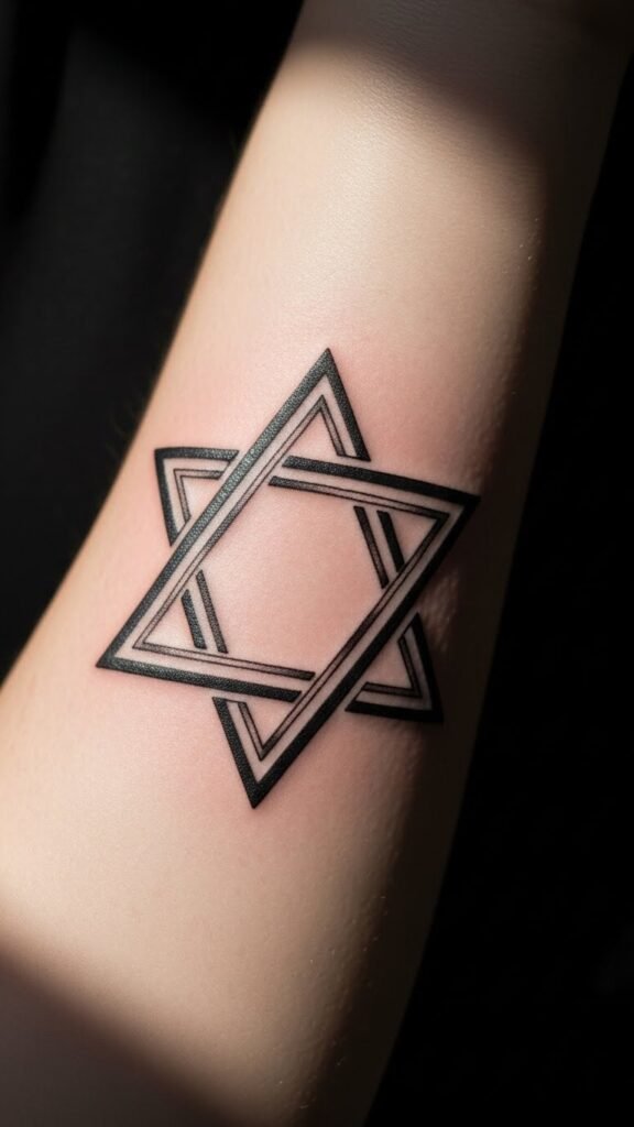 The Shatkona symbol, with its interlocking triangles, represents the harmonious union of masculine and feminine energies, making it an ideal choice for soulmate tattoos.