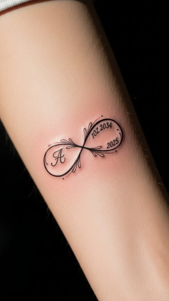 The placement on the wrist allows for easy visibility, making it a constant reminder of love and commitment. The infinity loop’s flowing lines echo the idea of continuity and unity, while the personal significance of the tattoo serves as a heartfelt testament to the wearer’s relationship.