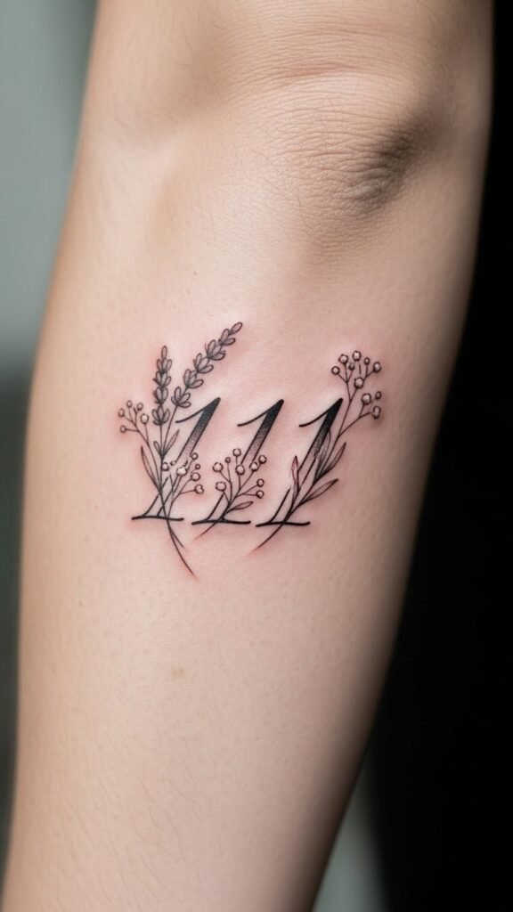 This tattoo symbolizes new beginnings and spiritual awakening, as the angel number 111 is often associated with manifestation and alignment with one’s true purpose.