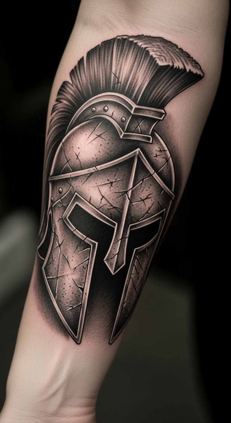 This tattoo symbolizes the enduring strength and resilience of the wearer, embodying the spirit of a Spartan warrior.
