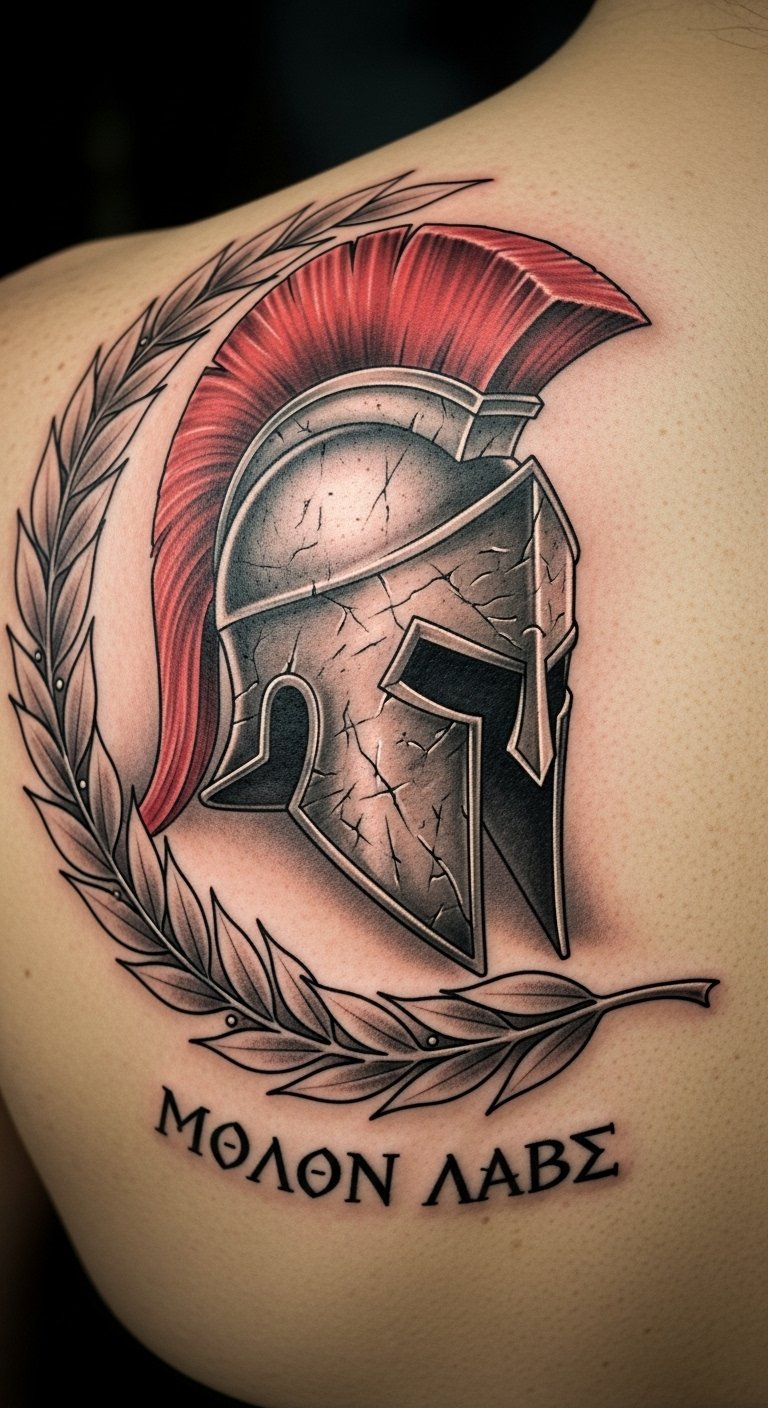 This tattoo symbolizes courage, strength, and resilience, embodying the warrior spirit of the Spartans.