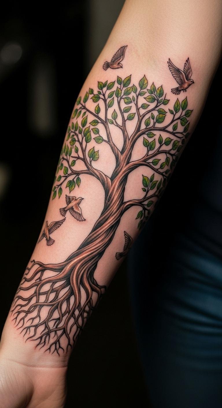 This tattoo symbolizes growth, strength, and the interconnectedness of life, making it a powerful representation of personal evolution.