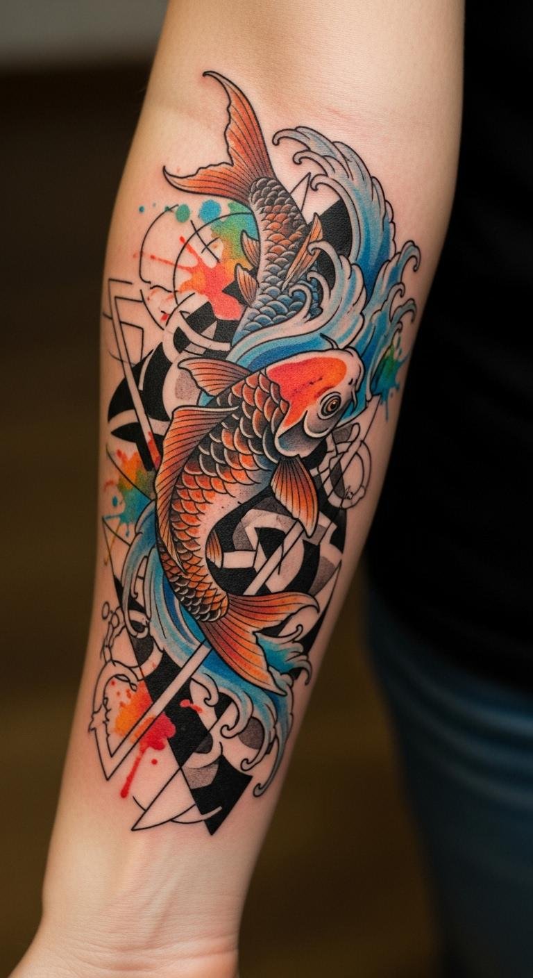 This tattoo symbolizes resilience and the journey of self-discovery, as the koi fish represents perseverance and determination in overcoming challenges.