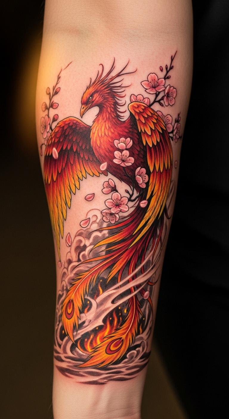 This tattoo symbolizes rebirth and resilience, representing the journey of overcoming challenges and emerging stronger, much like the mythical phoenix.