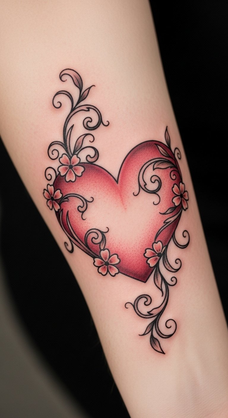 This heart tattoo is a striking representation of love and connection, making it a meaningful addition to the forearm, where it can be easily seen and shared.