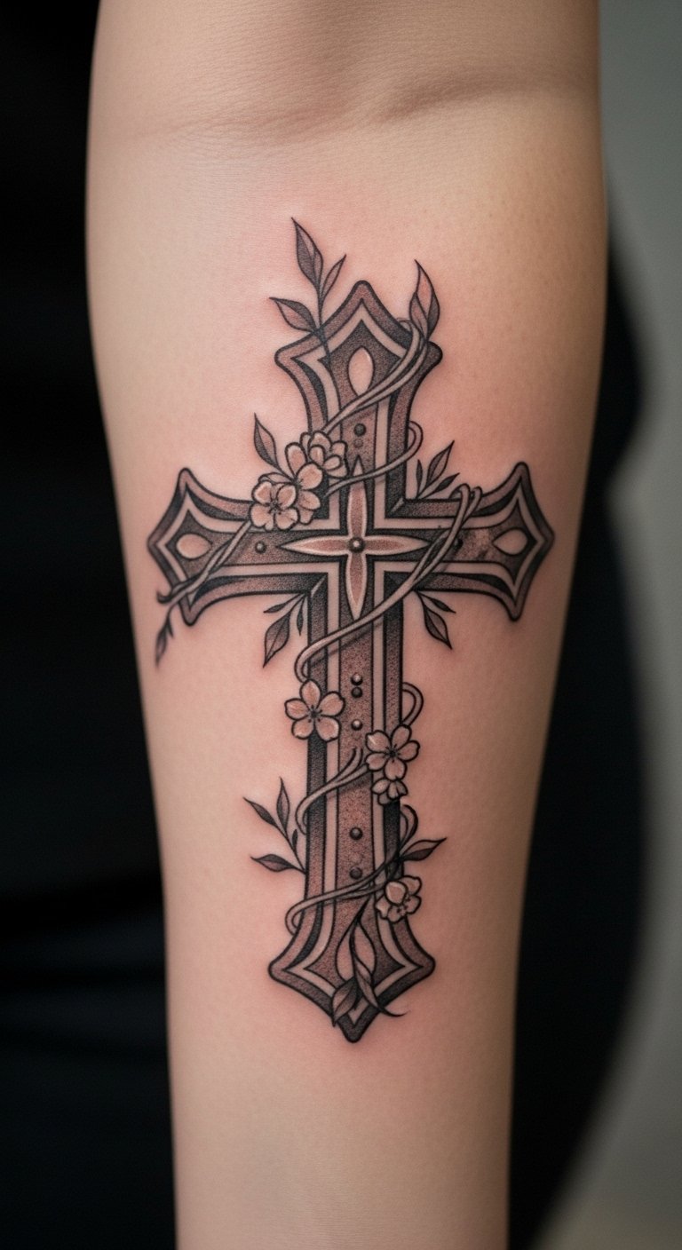 This cross tattoo serves as a profound representation of faith and spirituality, marking a journey filled with significant moments and personal growth.