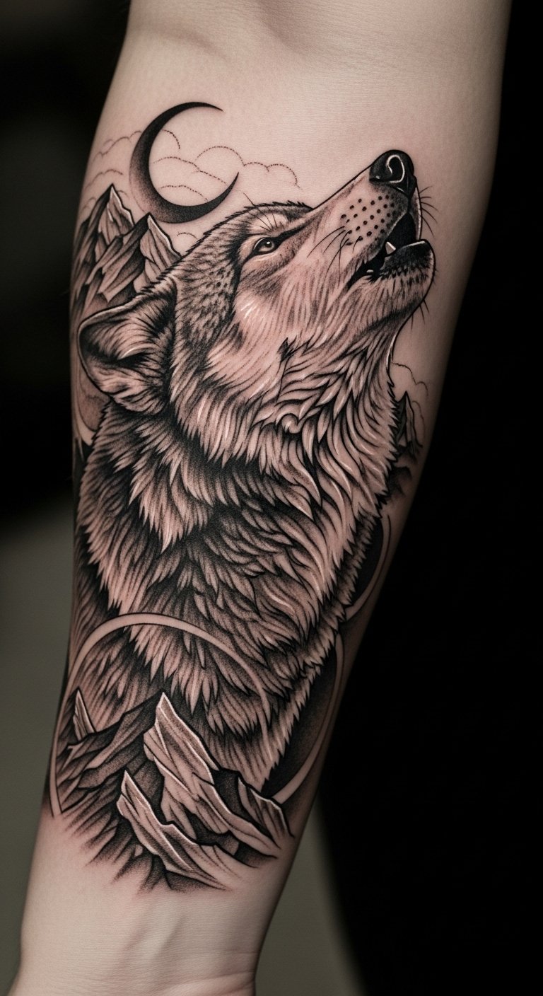 This tattoo symbolizes loyalty and the strong bonds of family, drawing on the profound connections found within pack dynamics.
