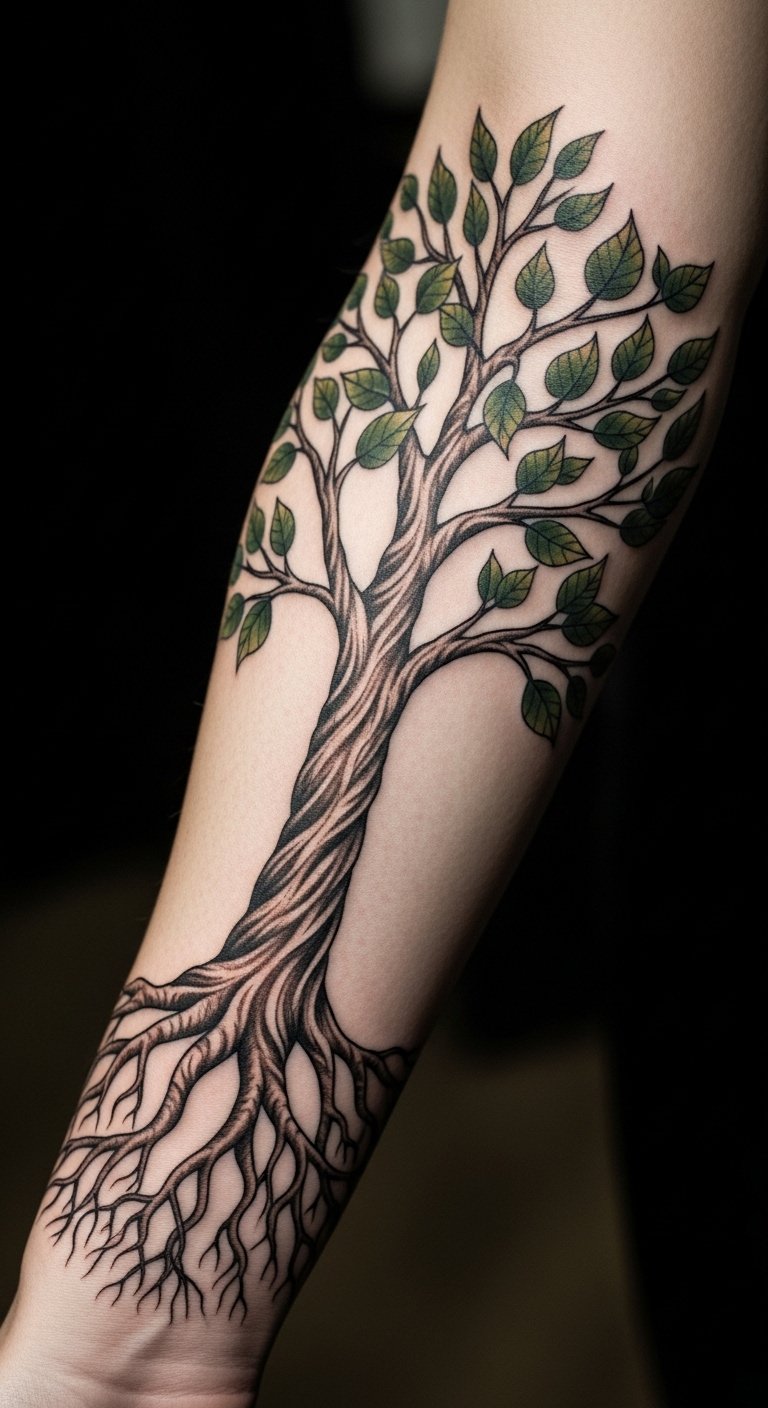 Embodying a profound connection to nature and personal growth, this tree tattoo on the forearm serves as a stunning representation of your journey through life.
