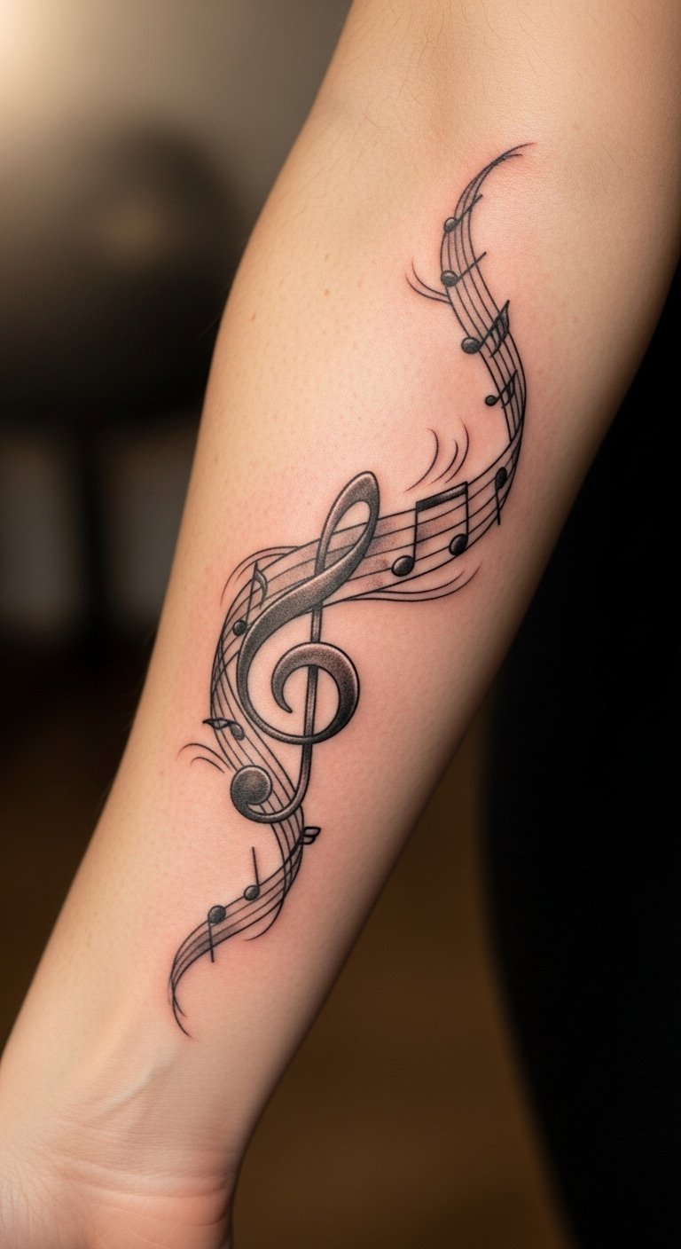 This placement allows for a personal connection, where every glance at the tattoo reignites passion and creativity, encouraging the wearer to embrace life’s rhythm wholeheartedly.