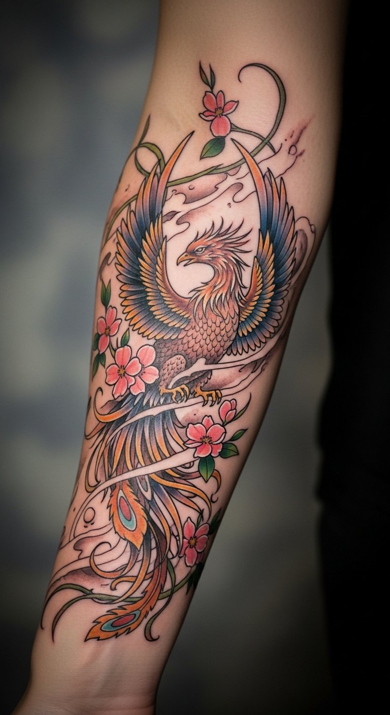 Placed on the forearm, it serves as a visible reminder of resilience and growth, empowering the wearer to embrace their unique path toward self-expression.