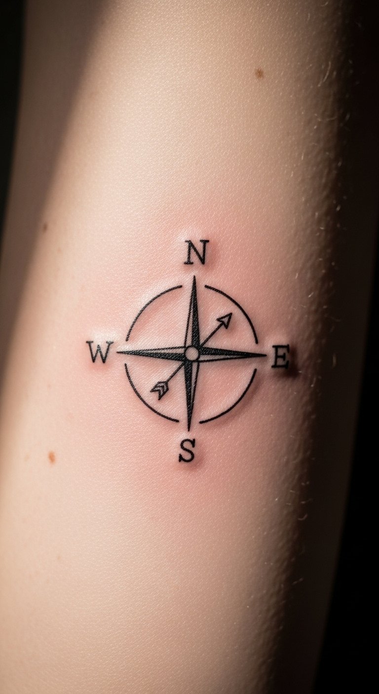 This compass tattoo symbolizes guidance and direction, reflecting the journey of life and the choices we make.