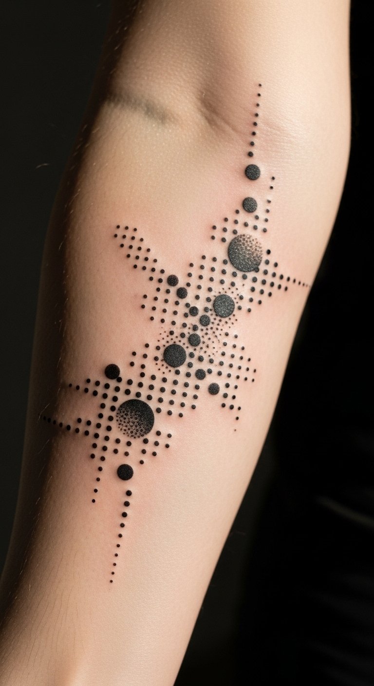 This tattoo design symbolizes significant milestones in one’s personal journey, with each dot representing a transformative experience.