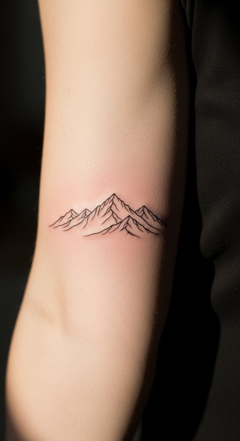 This tattoo symbolizes the journey of life, representing the highs and lows we encounter, much like the peaks and valleys of a mountain range.