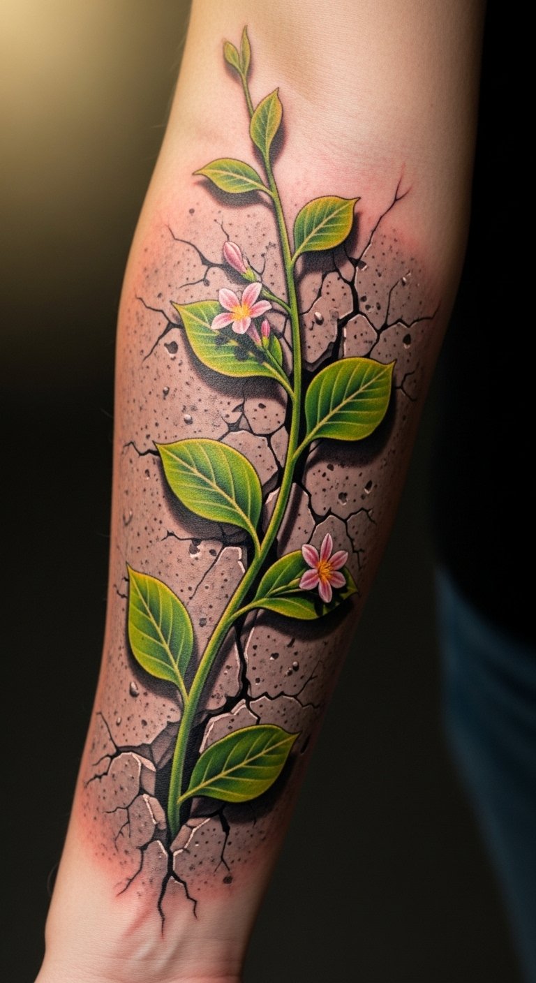 This tattoo symbolizes the journey of resilience, illustrating how strength can emerge from life’s challenges.