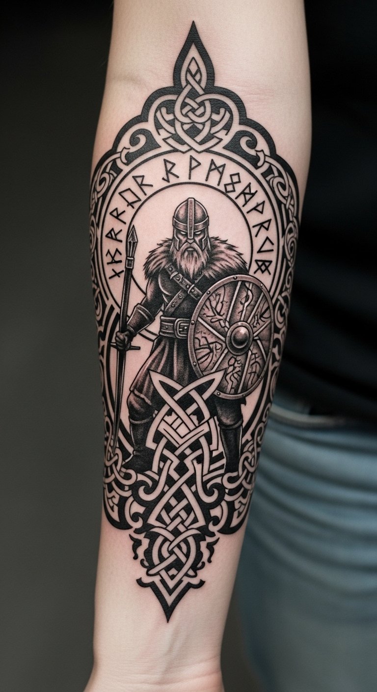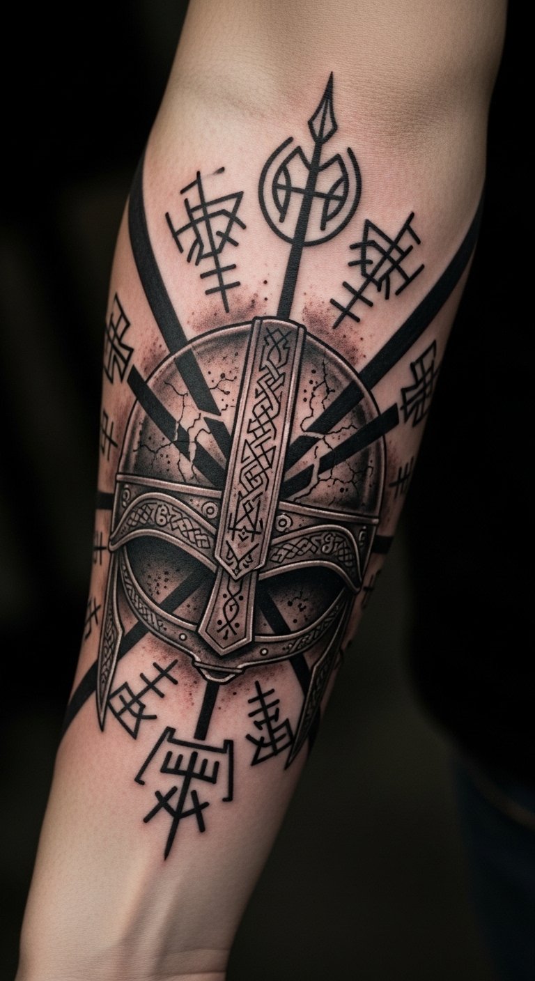 This placement allows for visibility during daily activities, symbolizing courage and resilience in life’s battles. The tattoo not only connects the wearer to Viking heritage but also acts as a protective emblem, instilling confidence and evoking a deep emotional bond with the warrior spirit.