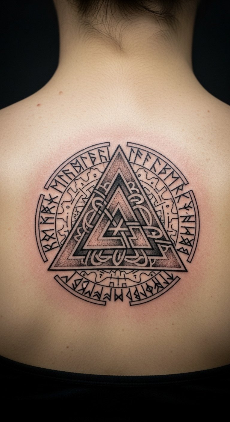 Placed on the upper back, the Valknut becomes a prominent reminder of ancestral pride and spiritual journey, allowing the wearer to carry the legacy of their heritage.