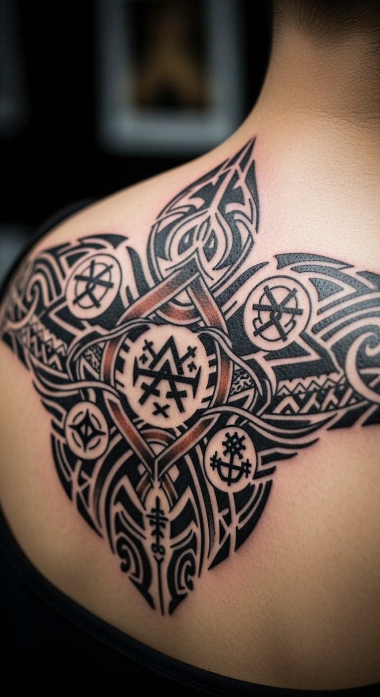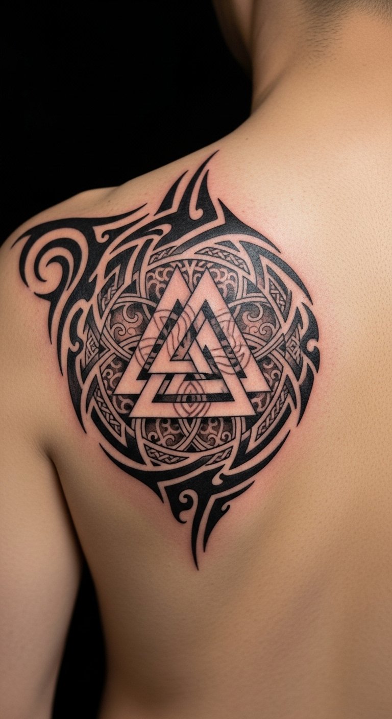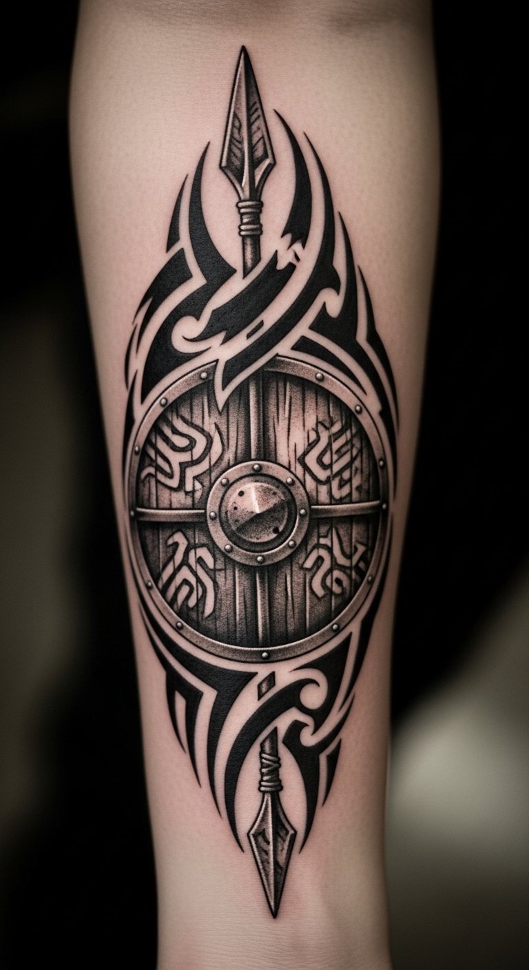 The tattoo symbolizes strength, protection, and honor, drawing from the rich traditions of warrior cultures.