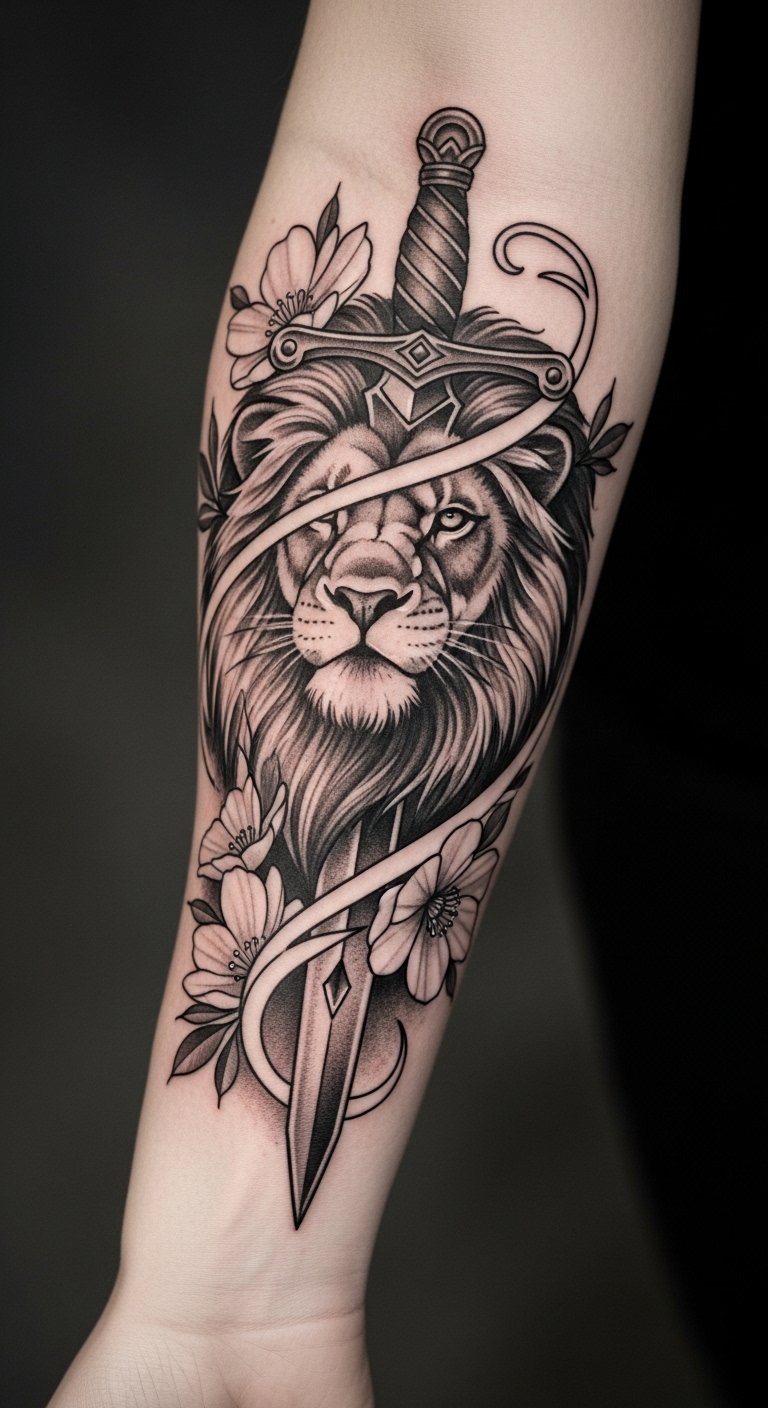 Embodying bravery and leadership, the lion stands as a timeless symbol of courage, often inspiring those who choose to wear its image as a tattoo.