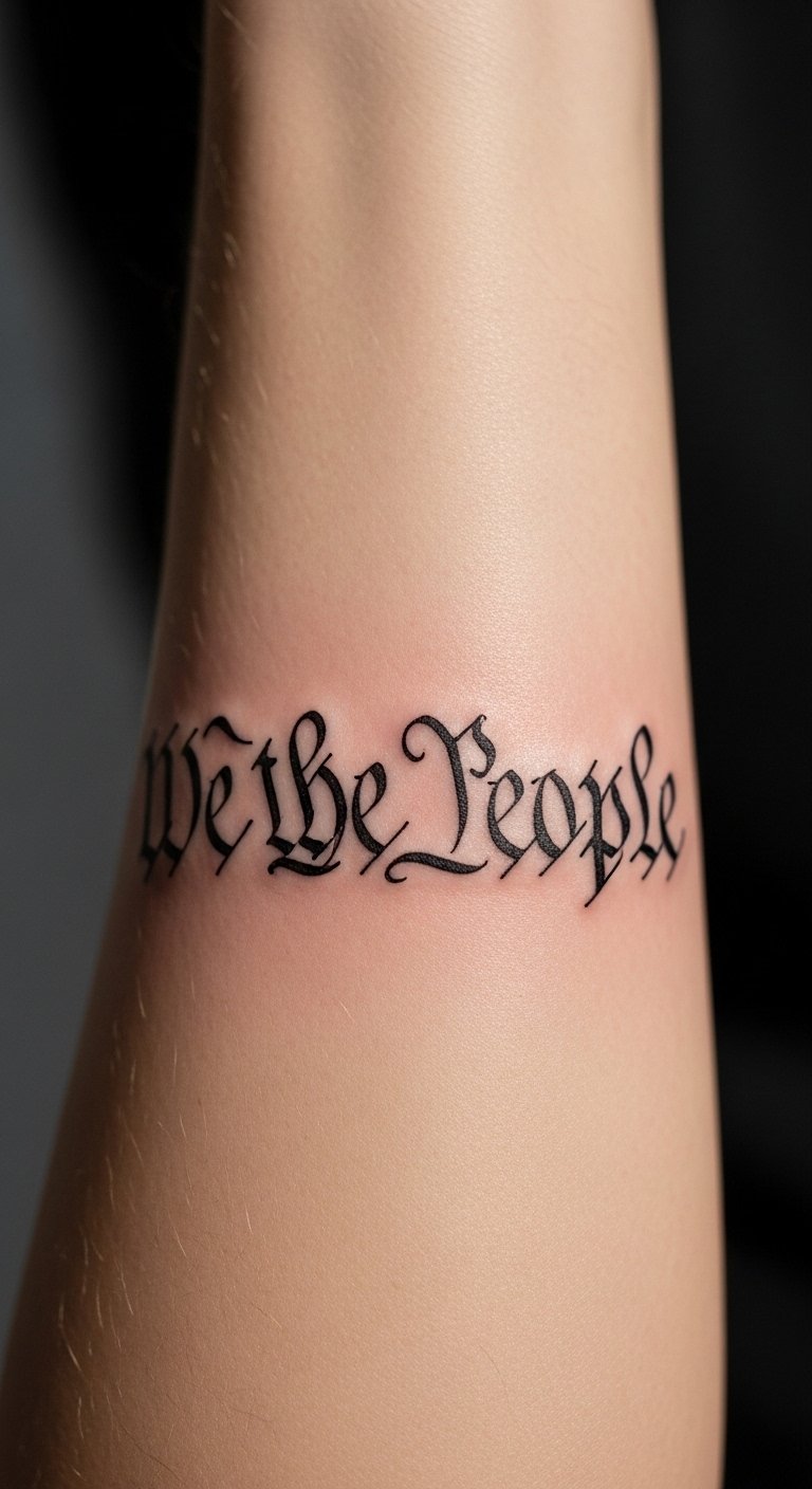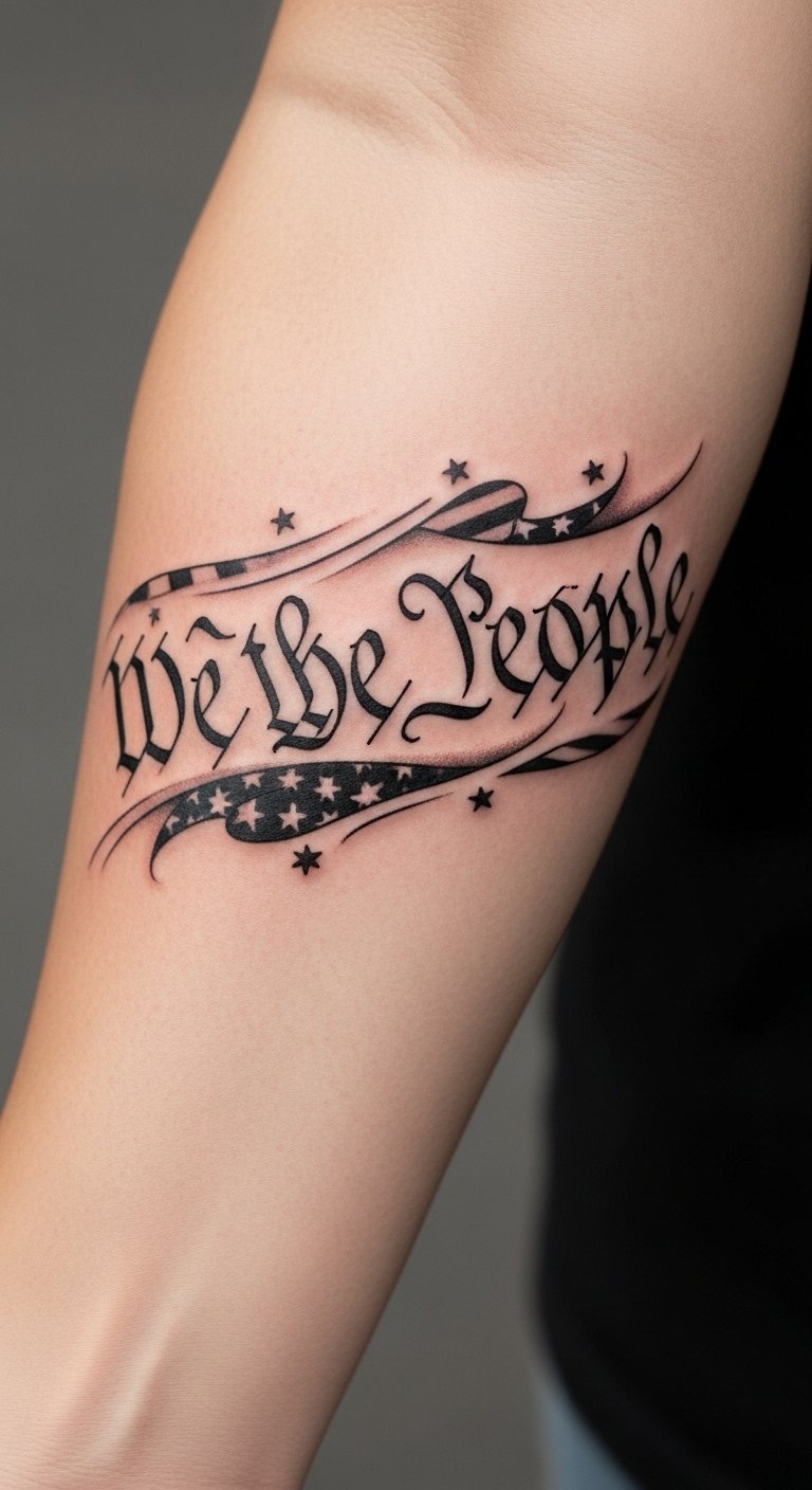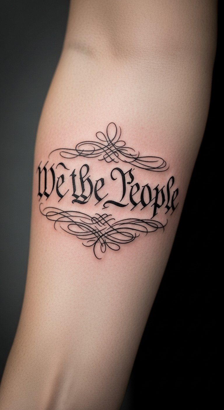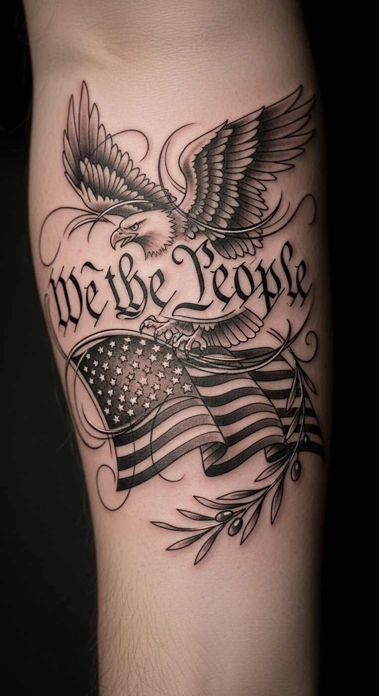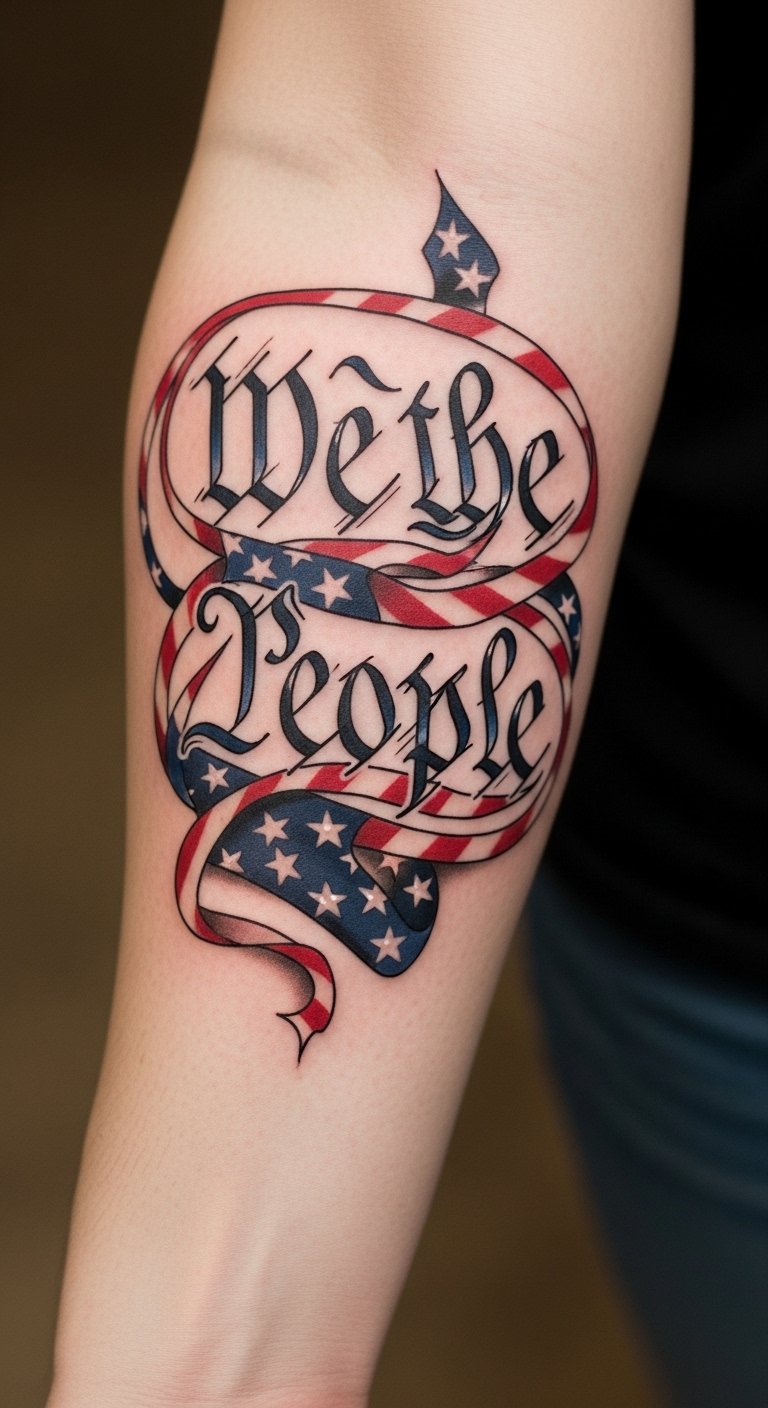 Incorporating American symbols into this tattoo enhances its meaning and visual impact. The phrase “We the People” represents the foundation of democracy, while the flag symbolizes patriotism and unity.