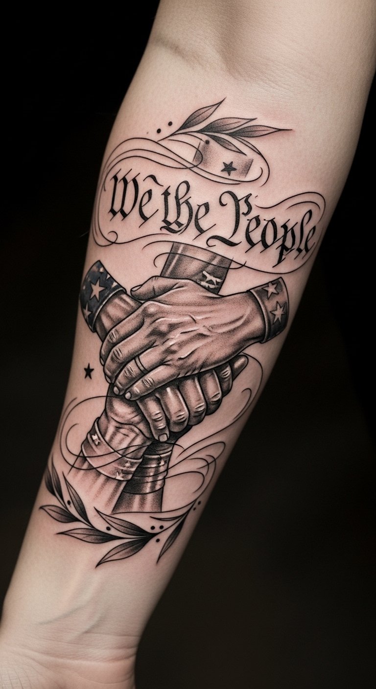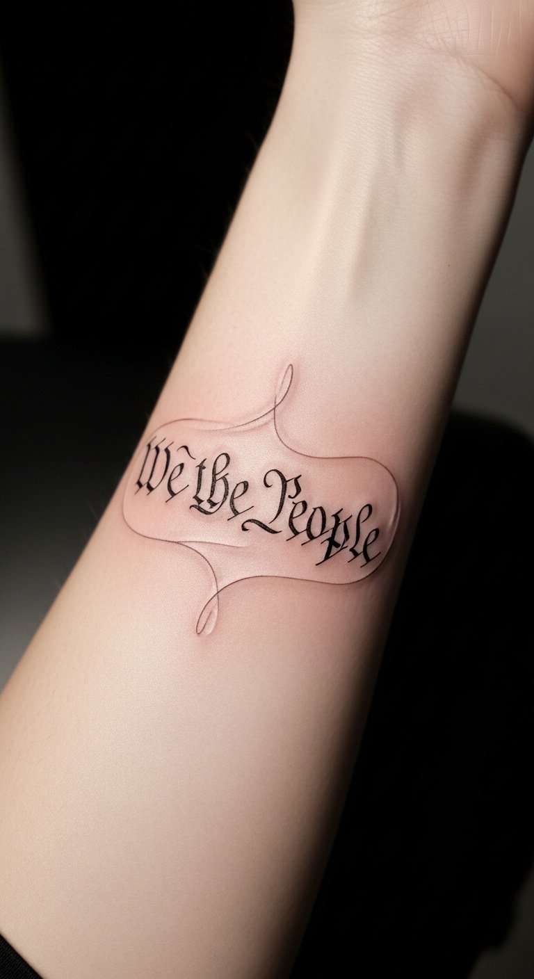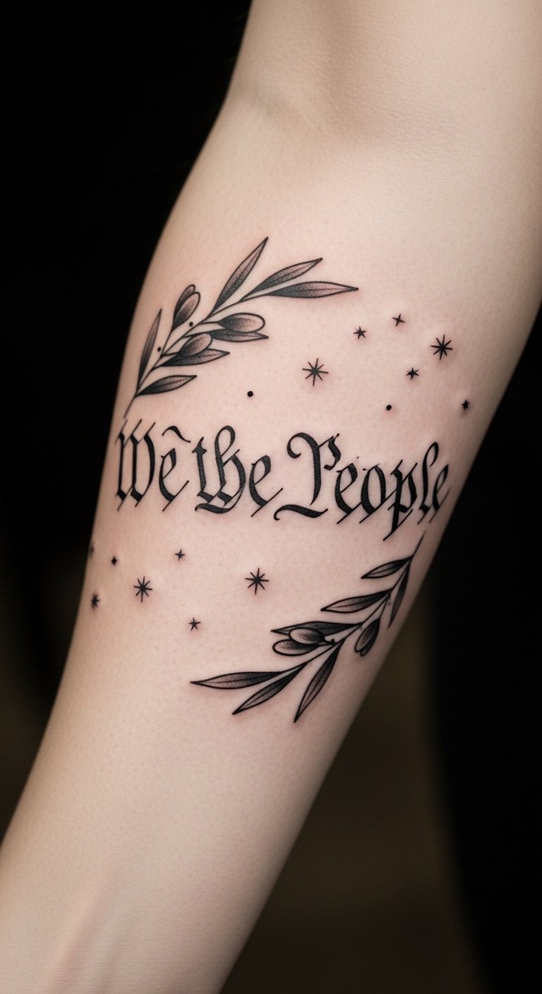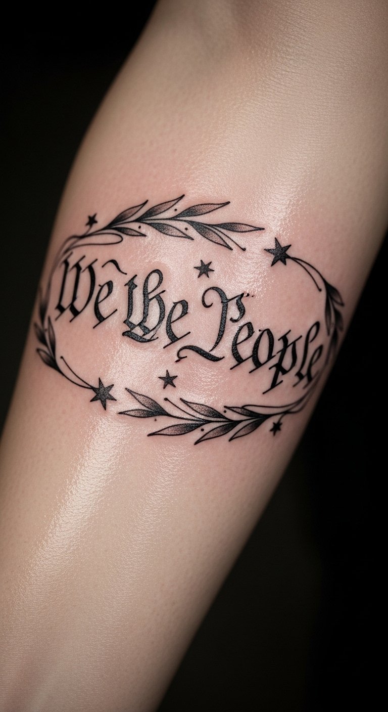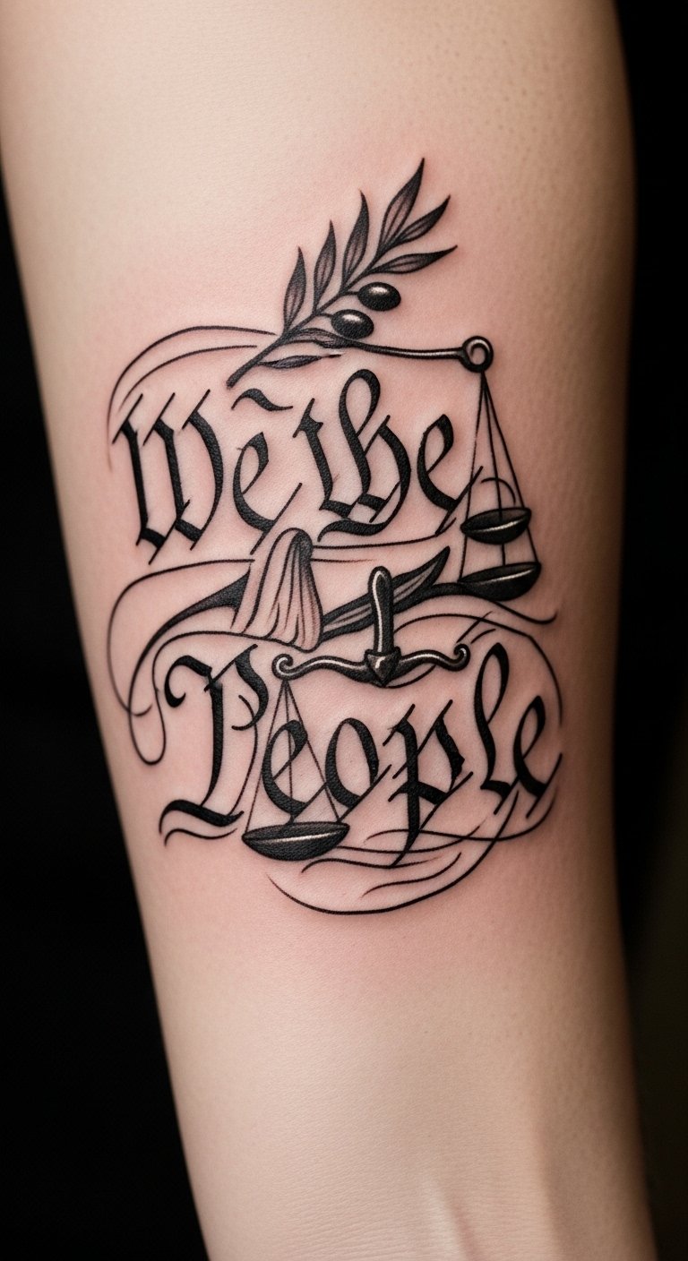 Incorporating American symbols into this tattoo enhances its meaning and visual impact. The phrase “We the People” represents the foundation of democracy, while the flag symbolizes patriotism and unity.