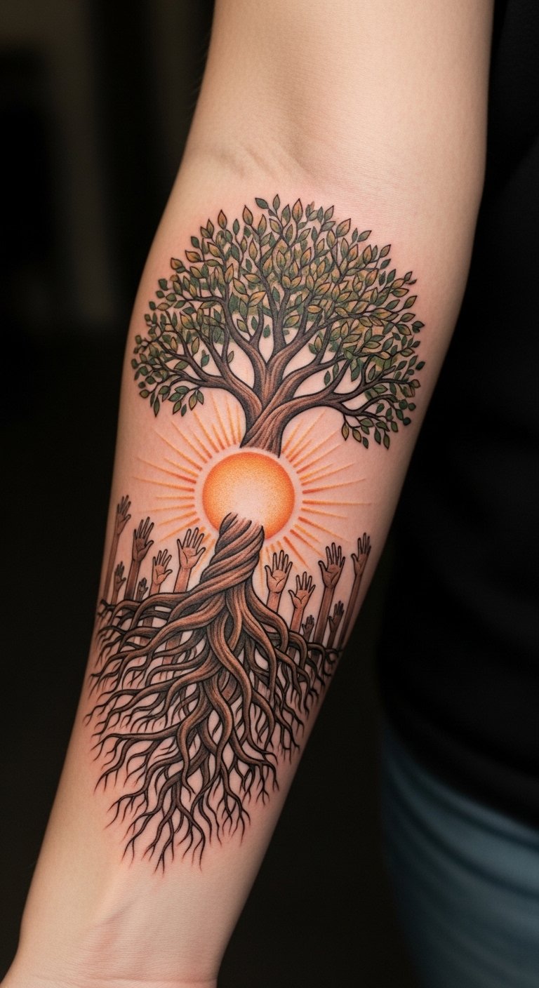 This tattoo design embodies the spirit of unity and empowerment, making a bold statement on the forearm where it’s easily visible yet personally significant.