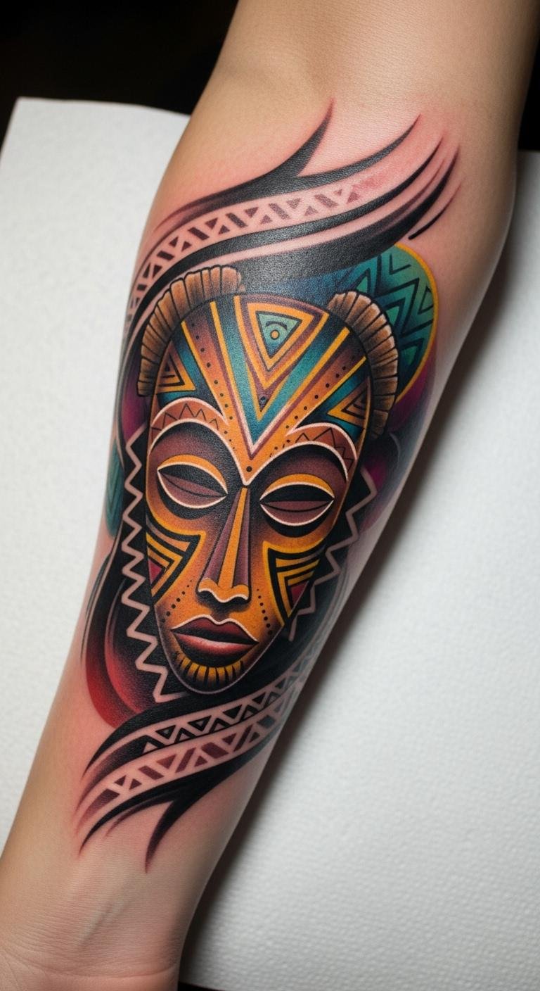 This tattoo design symbolizes the connection between past and present, honoring the rich cultural heritage of African traditions.