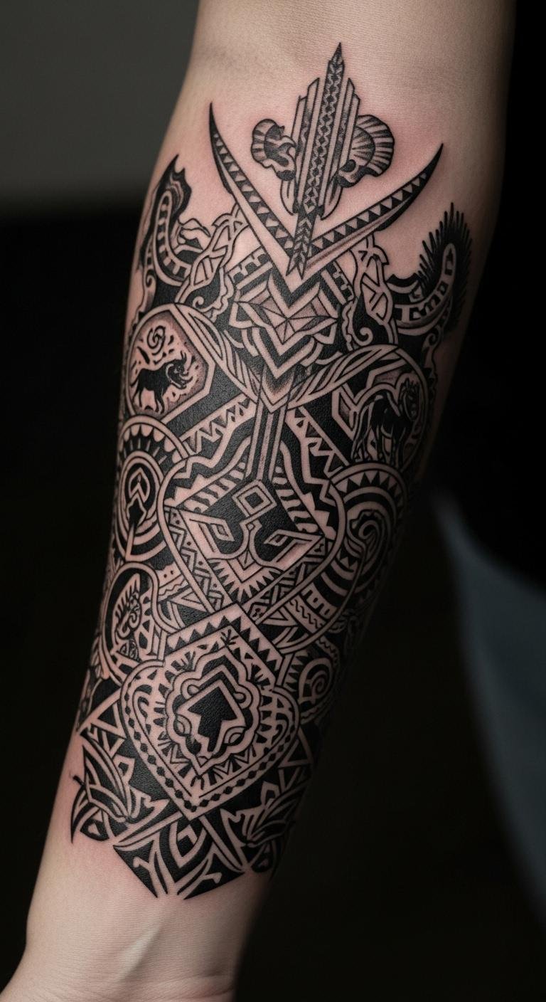 This tattoo design embodies a deep connection to heritage while expressing individuality.