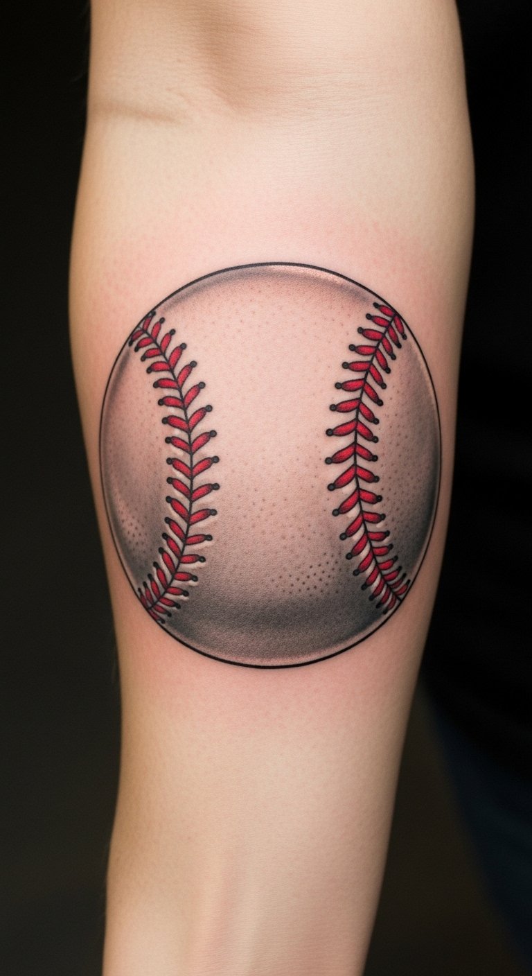 Embodying the spirit of teamwork and competition, this tattoo captures the essence of baseball’s camaraderie and excitement on a visible area like the forearm.