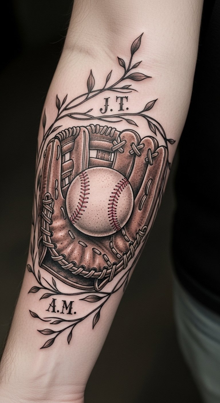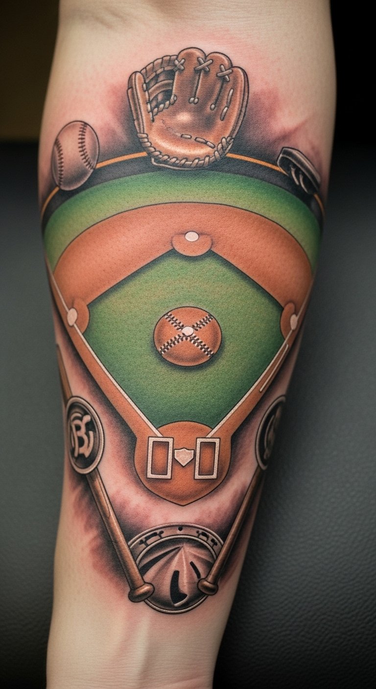 This tattoo symbolizes a deep connection to the game of baseball, representing not just the sport but also the cherished memories of teamwork and camaraderie.