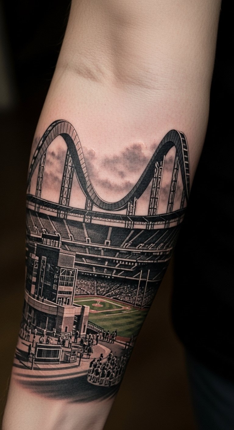 This tattoo serves as a powerful tribute to the passion for baseball, capturing the essence of unforgettable moments spent at the stadium.