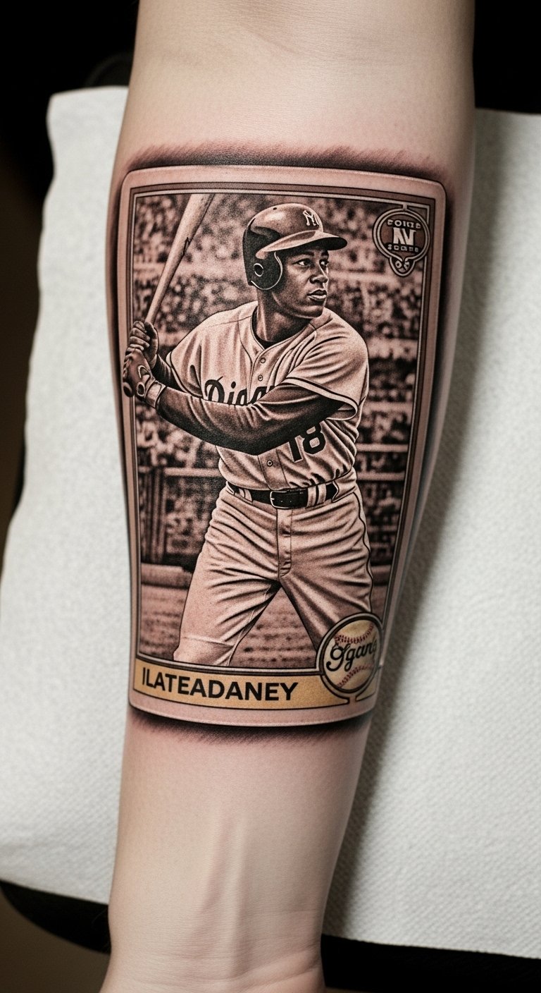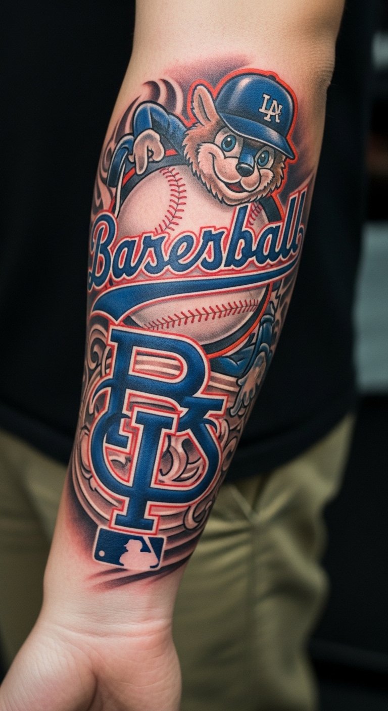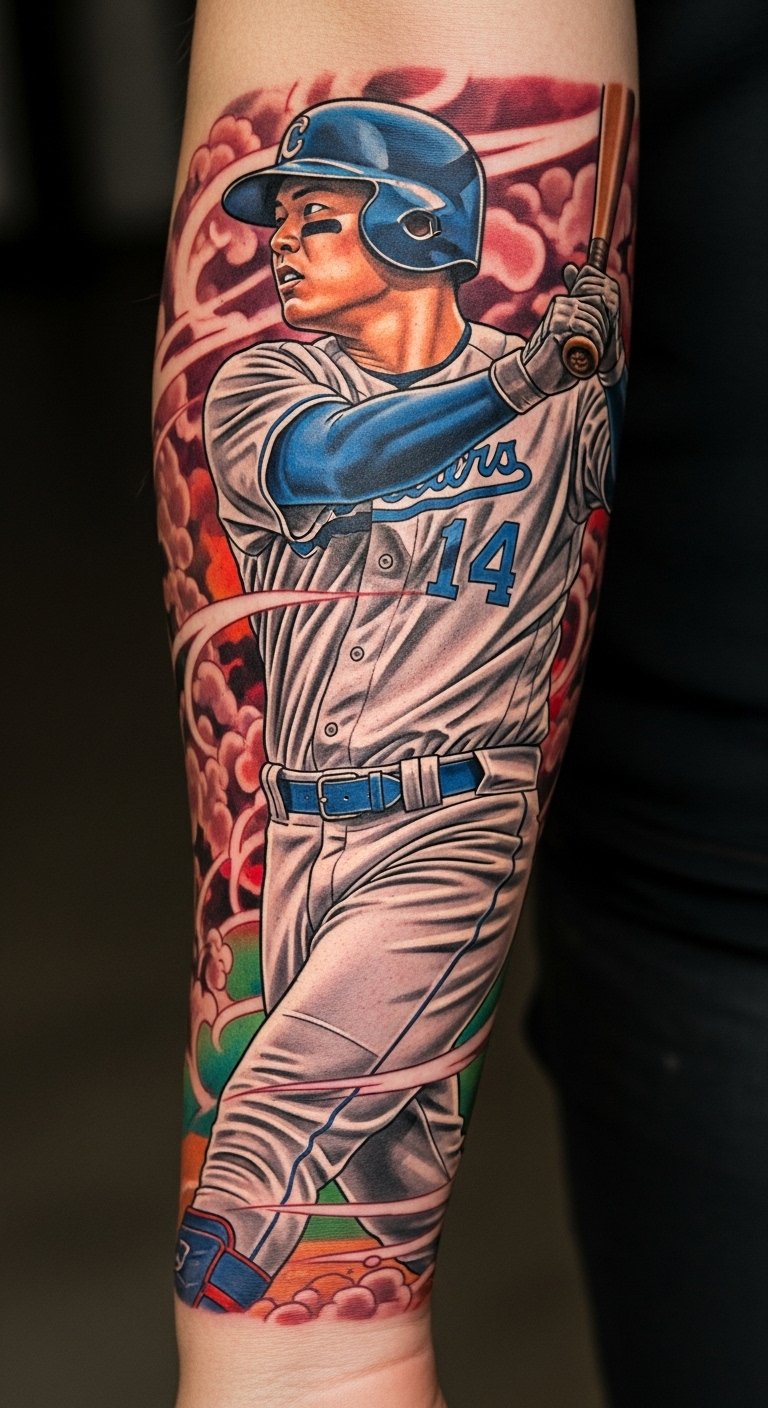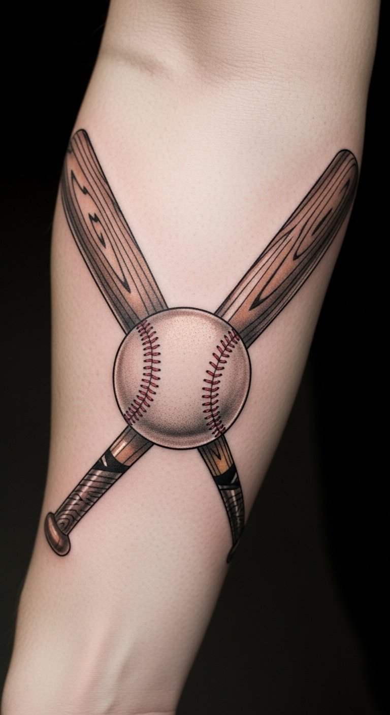 Positioned on the forearm, it serves as a constant reminder of the wearer’s love for baseball and the freedom of expression through art.