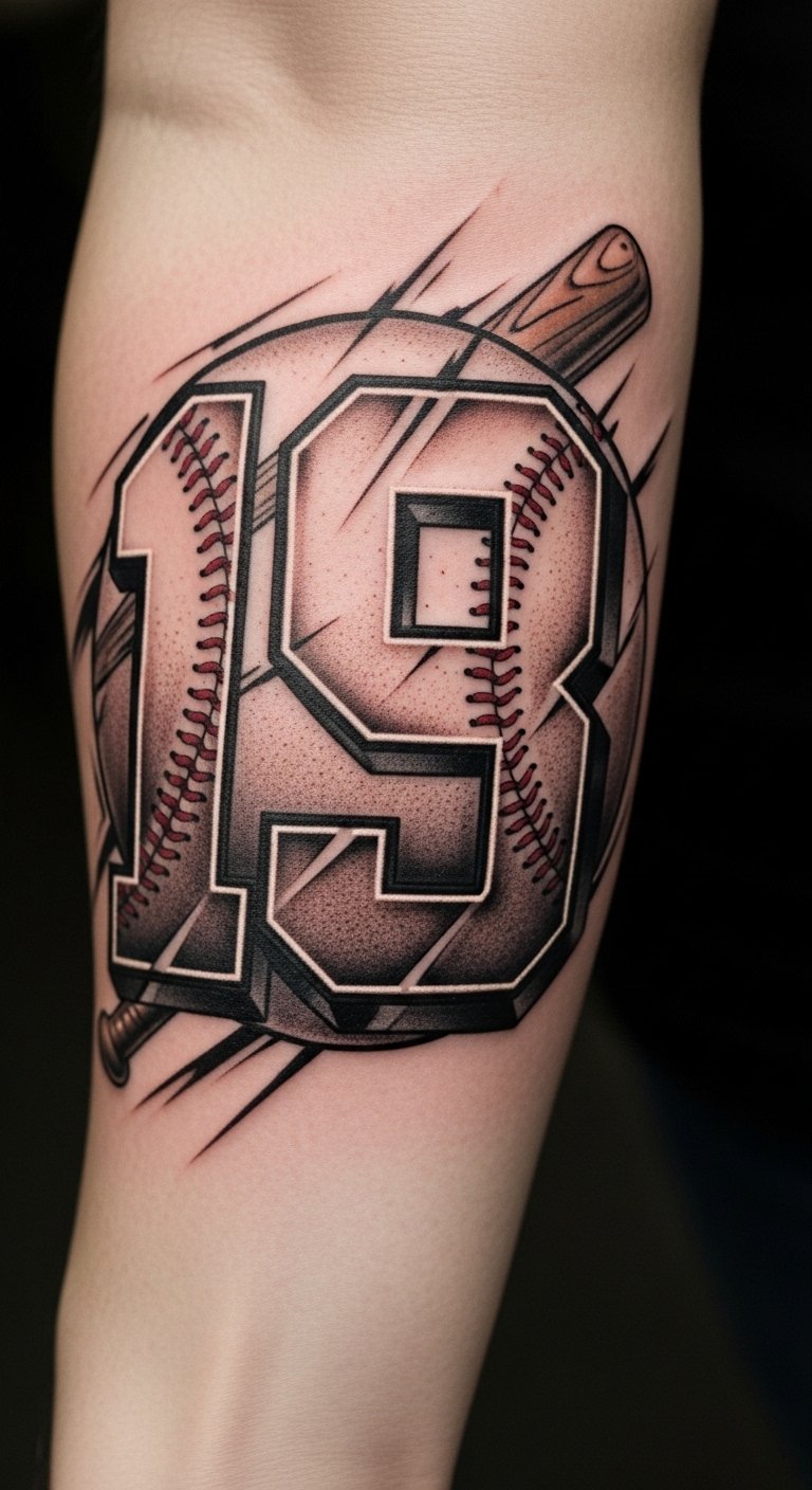 The combination of the jersey number and baseball elements evokes emotions of nostalgia and pride, celebrating both the artistry of tattooing and the love of the sport in a personal and meaningful way.