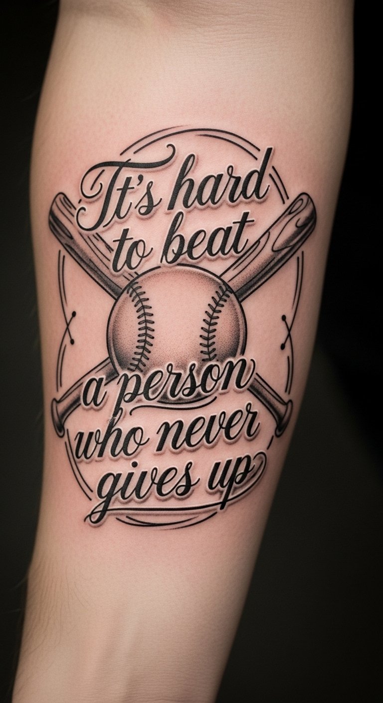 This tattoo serves as a powerful reminder of resilience and perseverance, capturing the essence of dedication that defines a true baseball enthusiast.