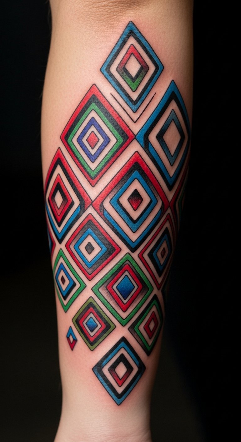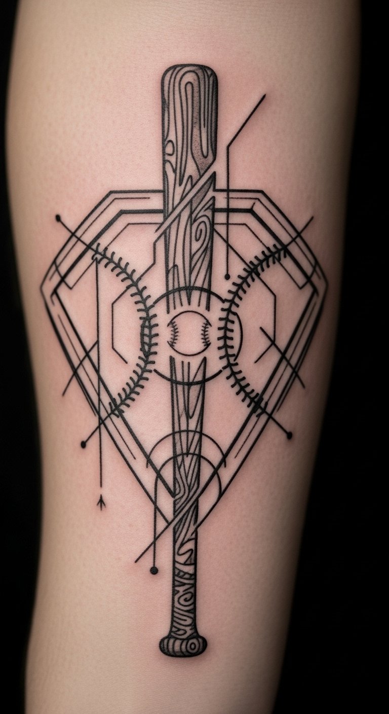 This tattoo design symbolizes the deep connection and passion fans have for baseball, illustrating the game’s structure and dynamics through geometric art.