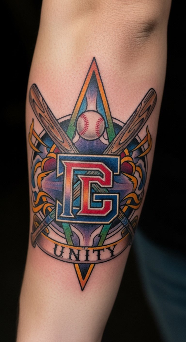 This tattoo symbolizes the deep connection and camaraderie shared among teammates and fans in the baseball community.