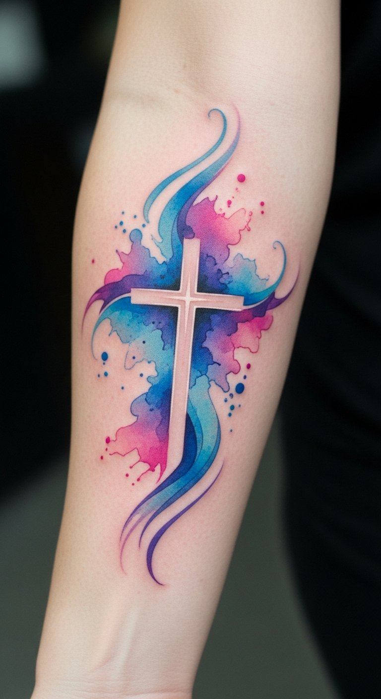 Watercolor Cross Tattoos: Artistic Expression