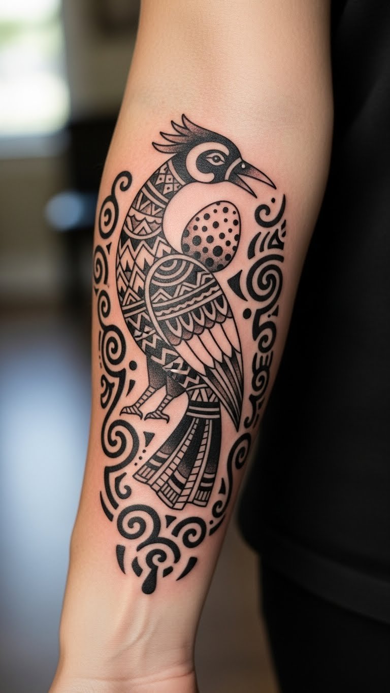 The natural skin tone and lighting enhance the tattoo’s realism, making it appear as a living part of the wearer’s identity, embodying their journey and cultural heritage.