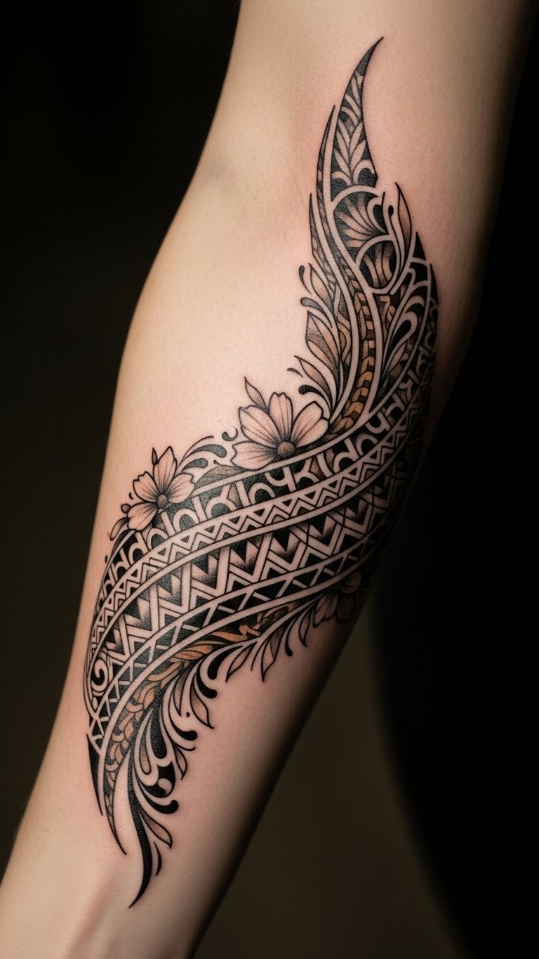 This tattoo design, placed on the forearm, serves as a powerful emblem of lineage and cultural expression.