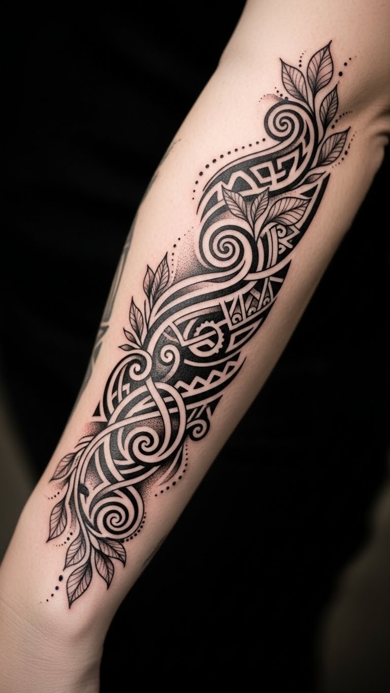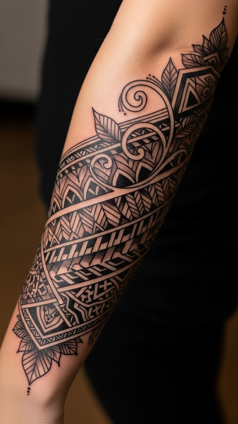 Placed on the forearm, it becomes a visible testament to the wearer’s connection to their ancestry and a celebration of individuality, allowing them to showcase their appreciation for tribal art in a meaningful and personal way.