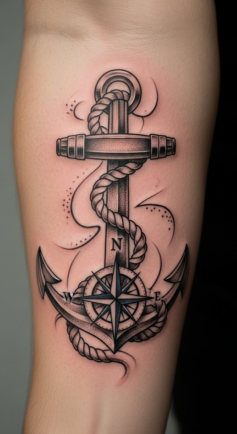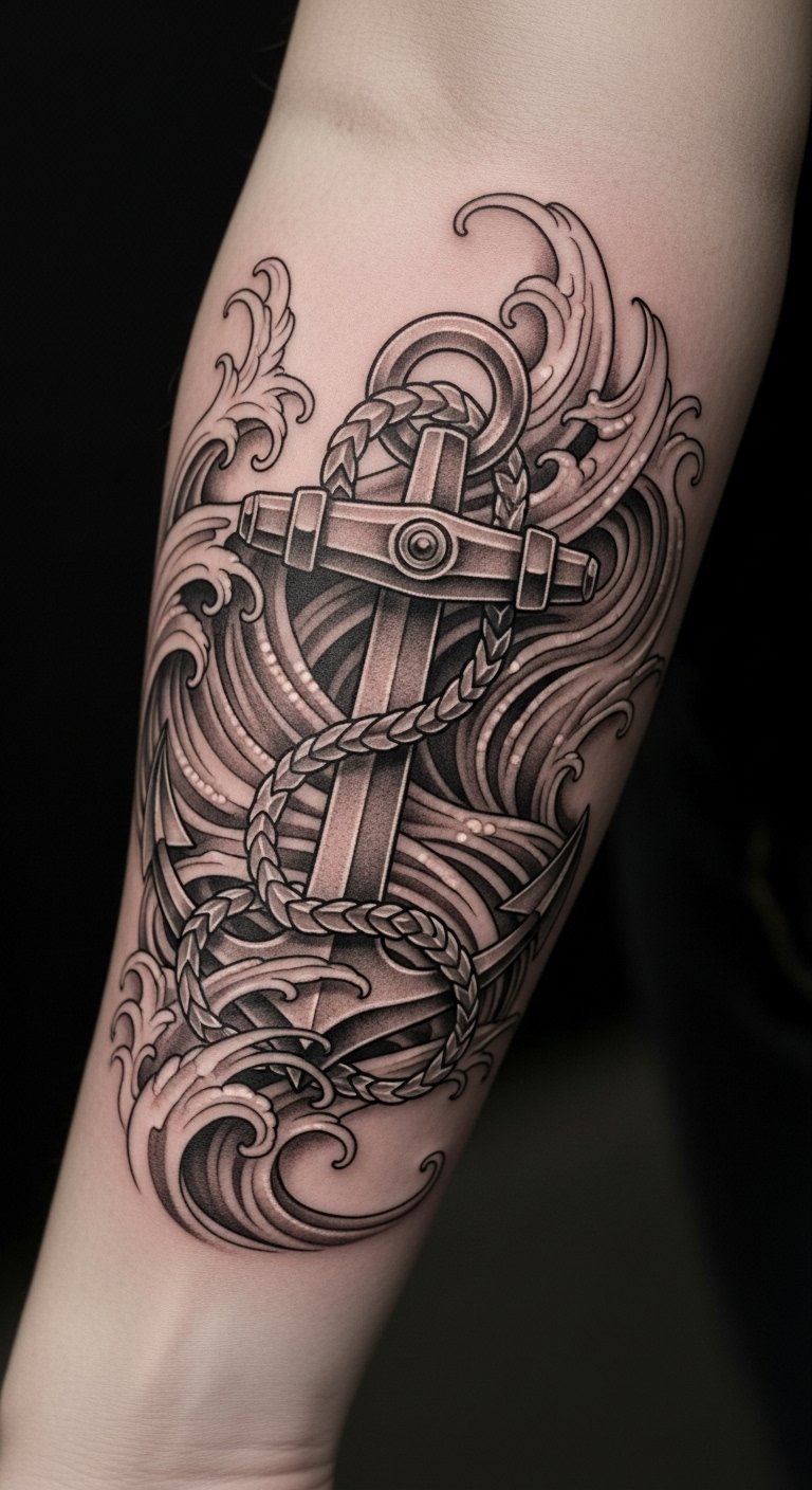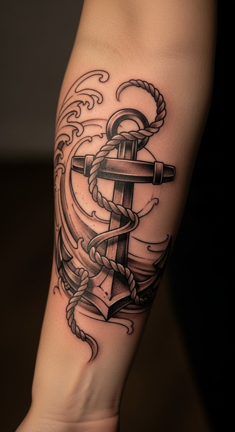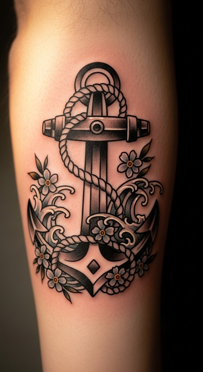 The anchor symbolizes stability and hope, often representing a strong connection to the sea or serving as a reminder to stay grounded through life’s challenges.