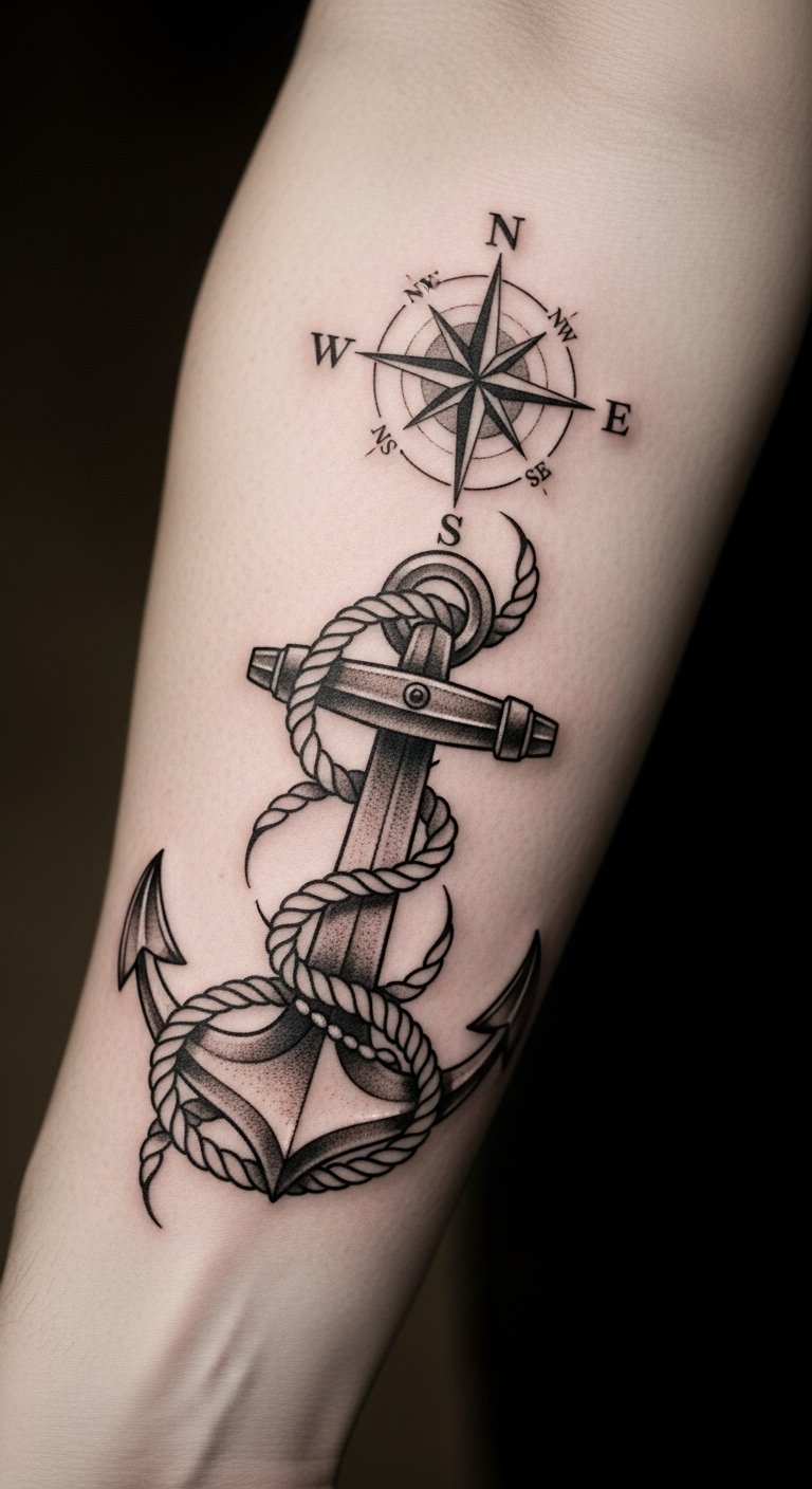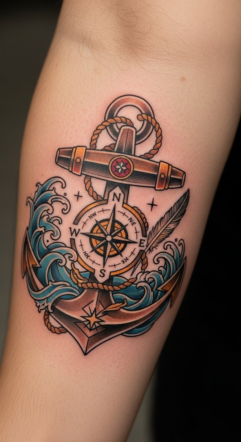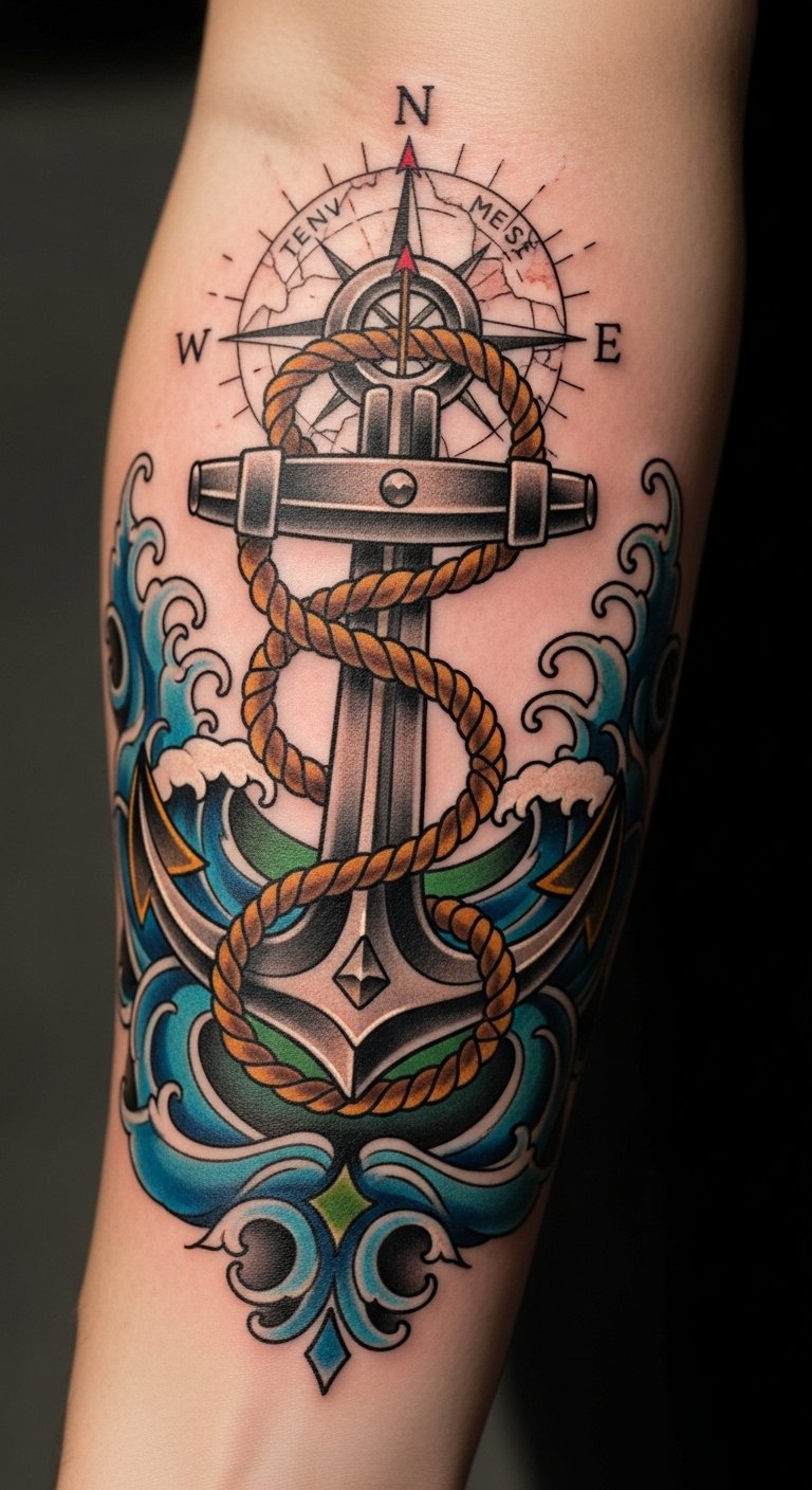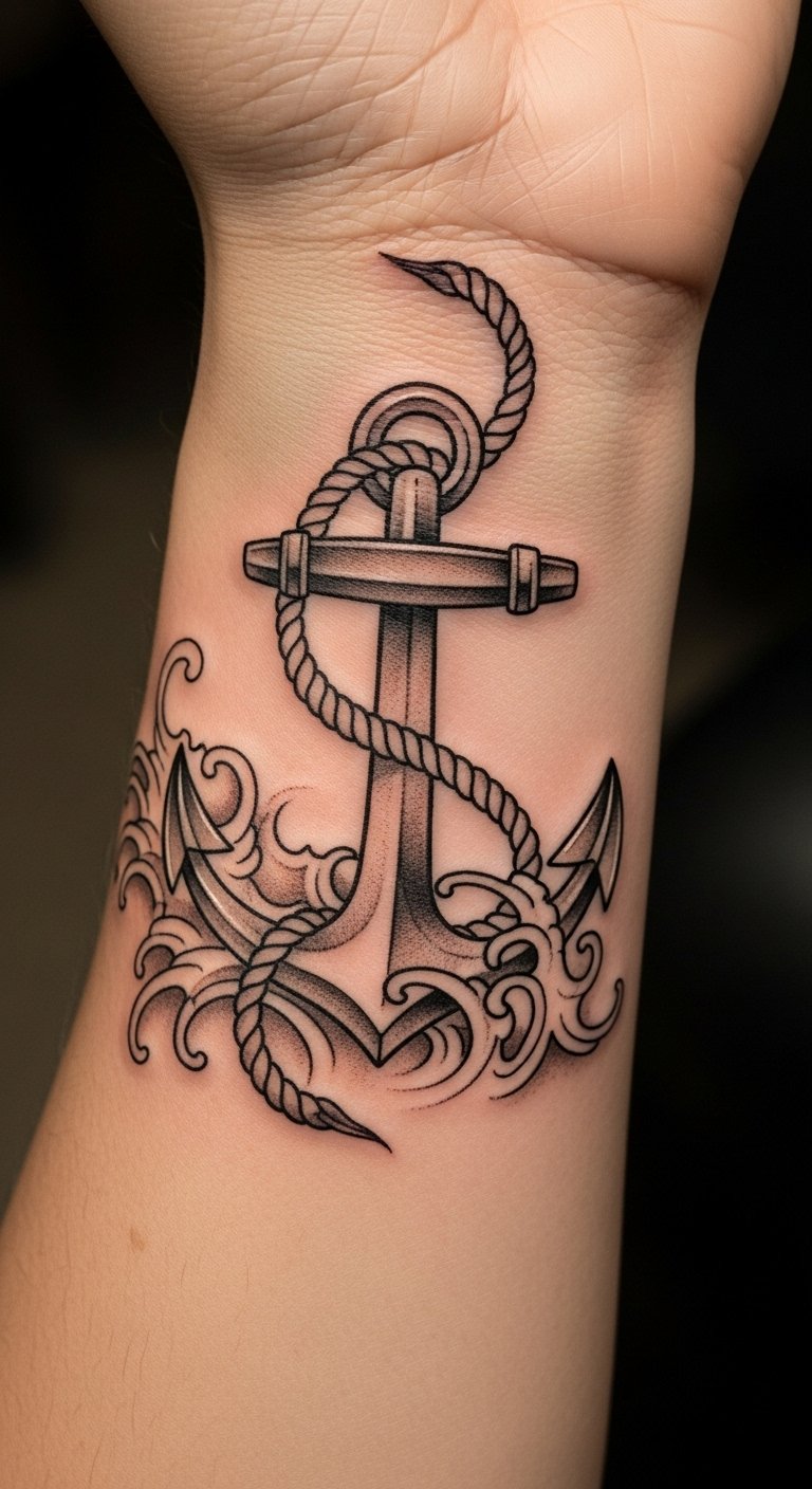The anchor symbolizes stability and hope, often representing a strong connection to the sea or serving as a reminder to stay grounded through life’s challenges.
