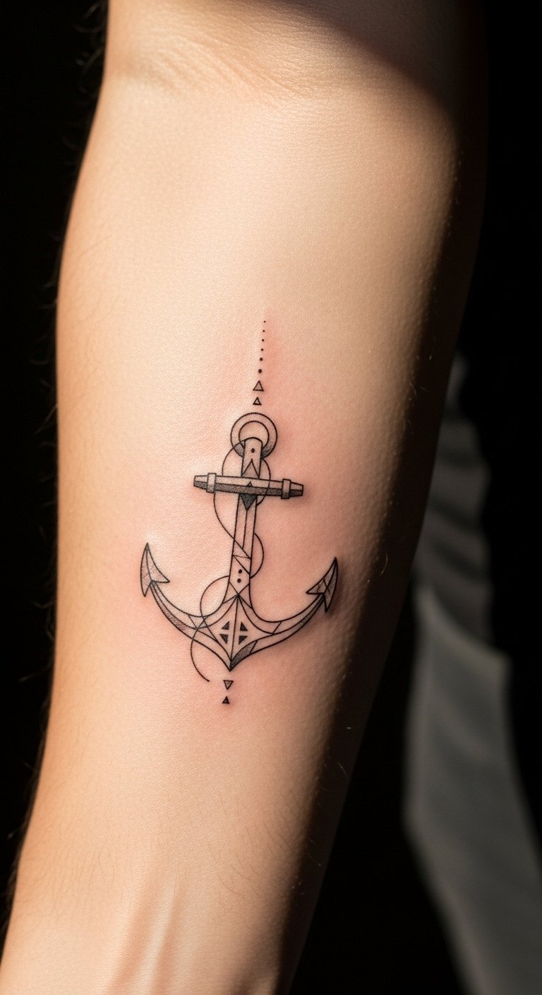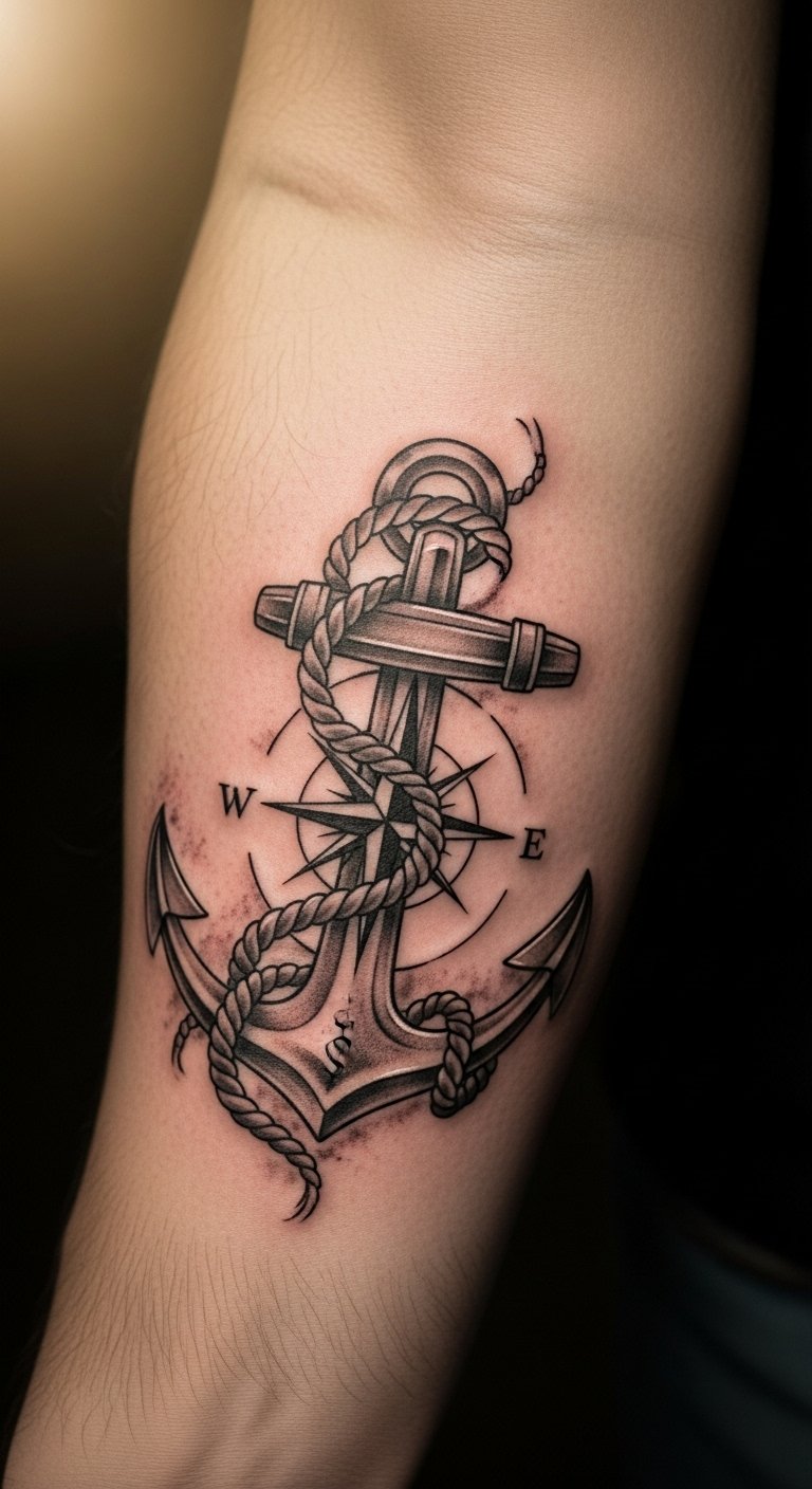 The anchor tattoo on the forearm symbolizes stability and strength, serving as a constant reminder of one’s journey through life’s turbulent waters.