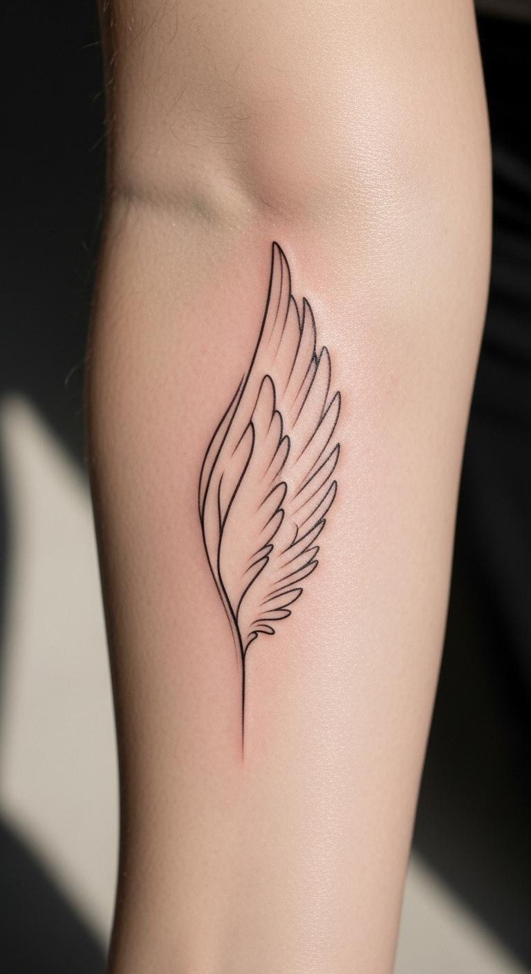 The minimalist angel wing tattoo embodies freedom and grace through its simplistic design, making it a profound statement about liberation and connection.