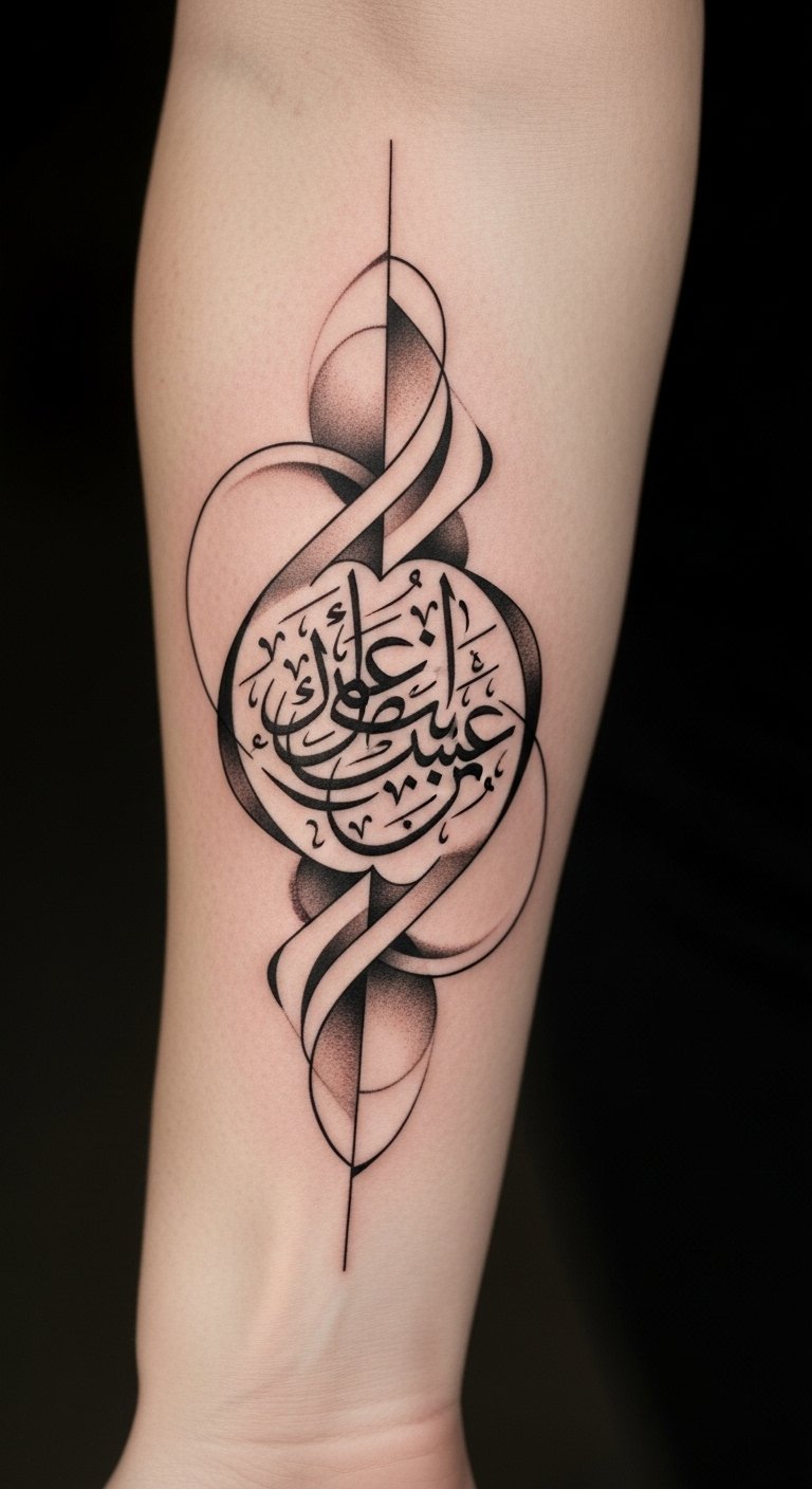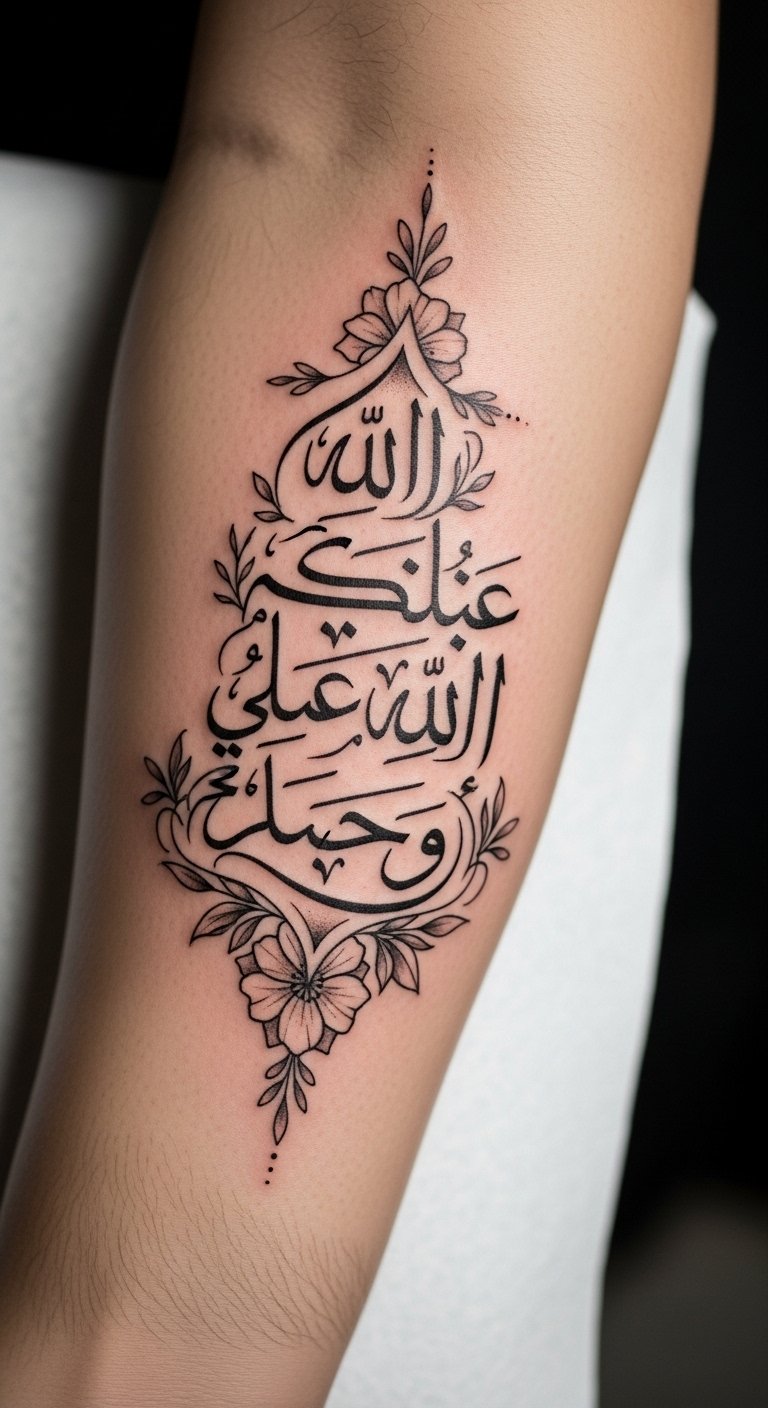 This tattoo design captures the essence of Arabic calligraphy, symbolizing personal beliefs and cultural heritage.