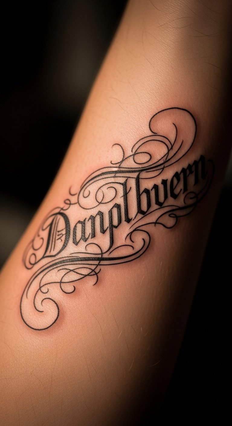 Placed on the inner forearm, it remains visible yet personal, making it a constant reminder of the beauty and significance of their name.