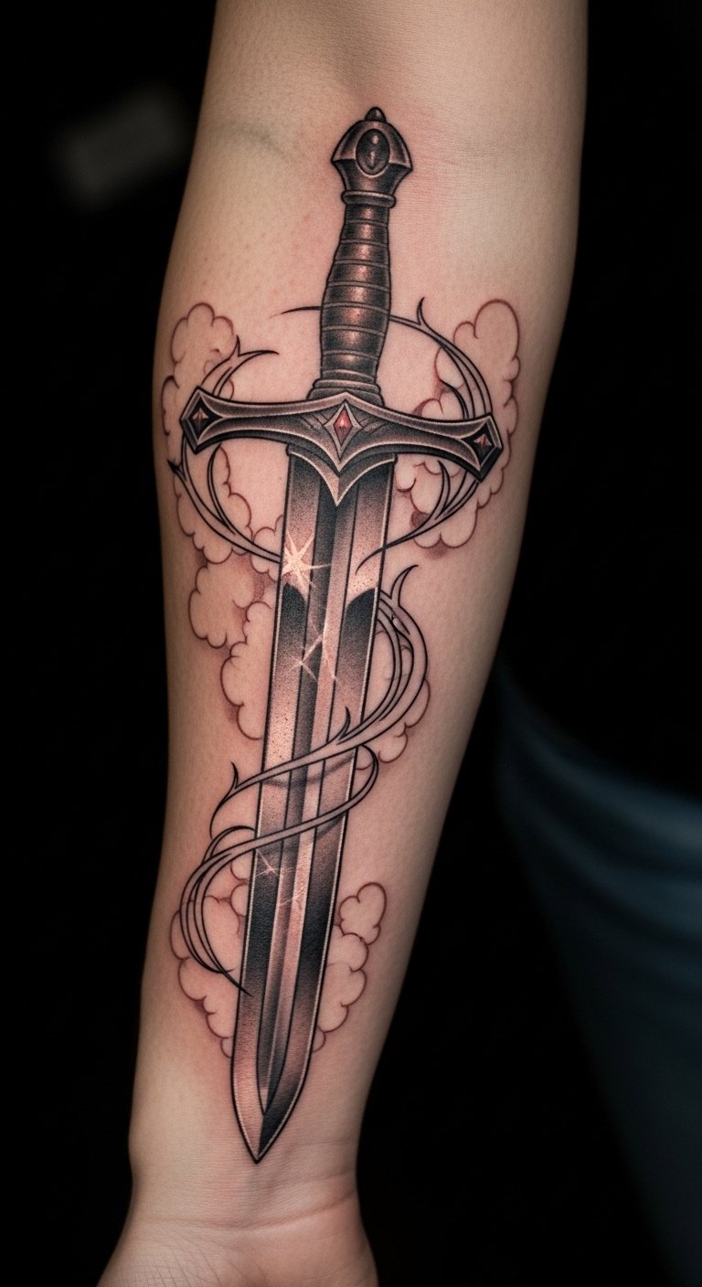 This tattoo, placed on the forearm, serves as a powerful emblem of self-expression and personal journey.