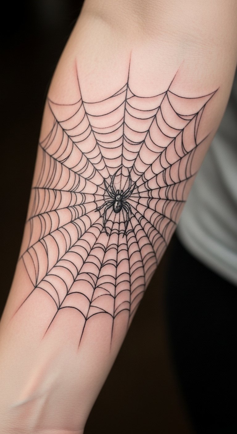 The spiderweb tattoo on the forearm embodies the intricate dance of life’s challenges. Its placement allows for visibility and personal expression, serving as a daily reminder of resilience.