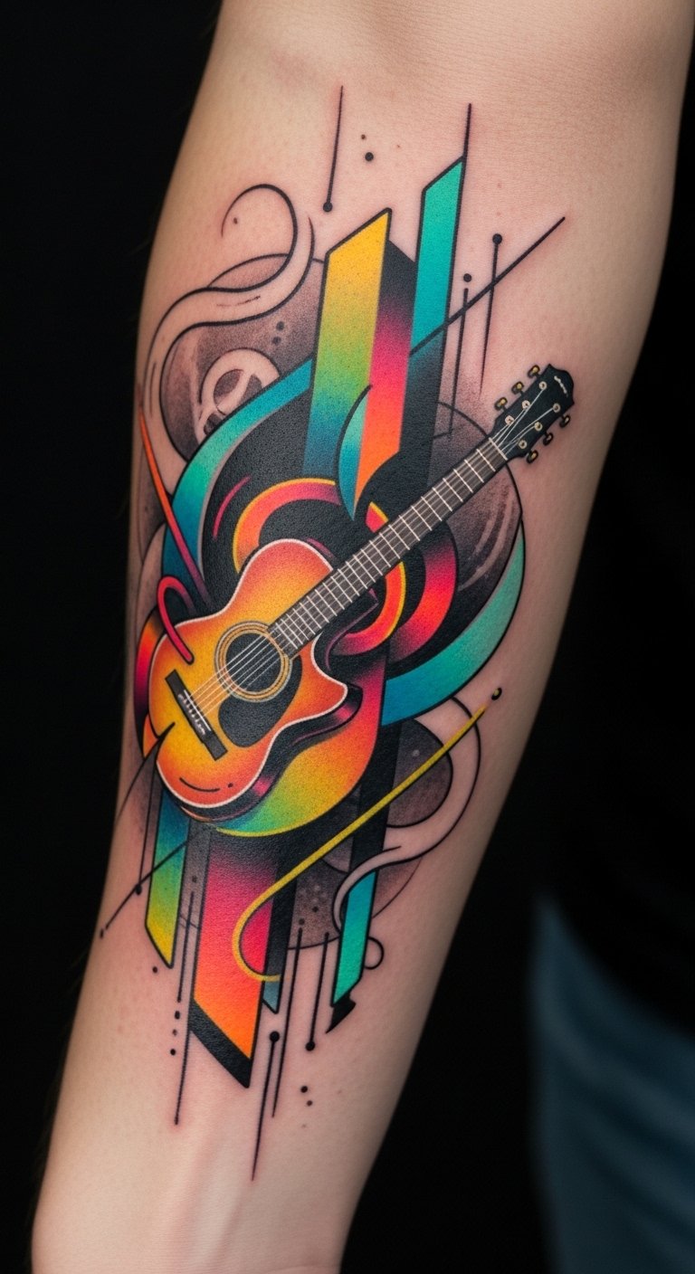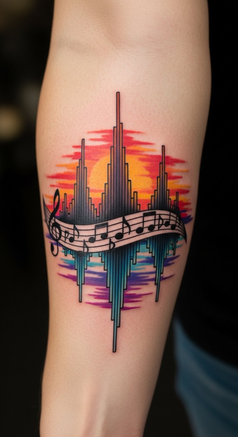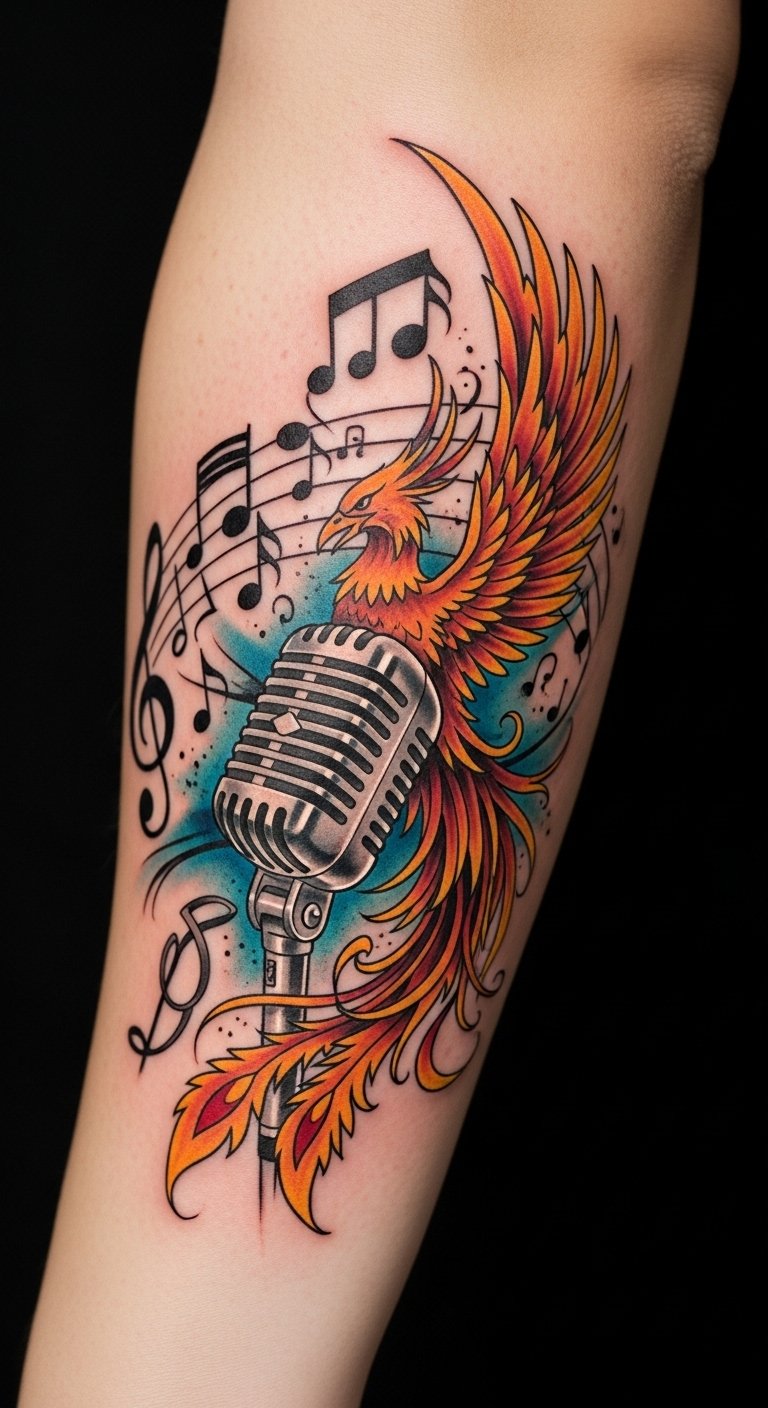 This tattoo, placed on the forearm, symbolizes the powerful connection between music and personal expression.